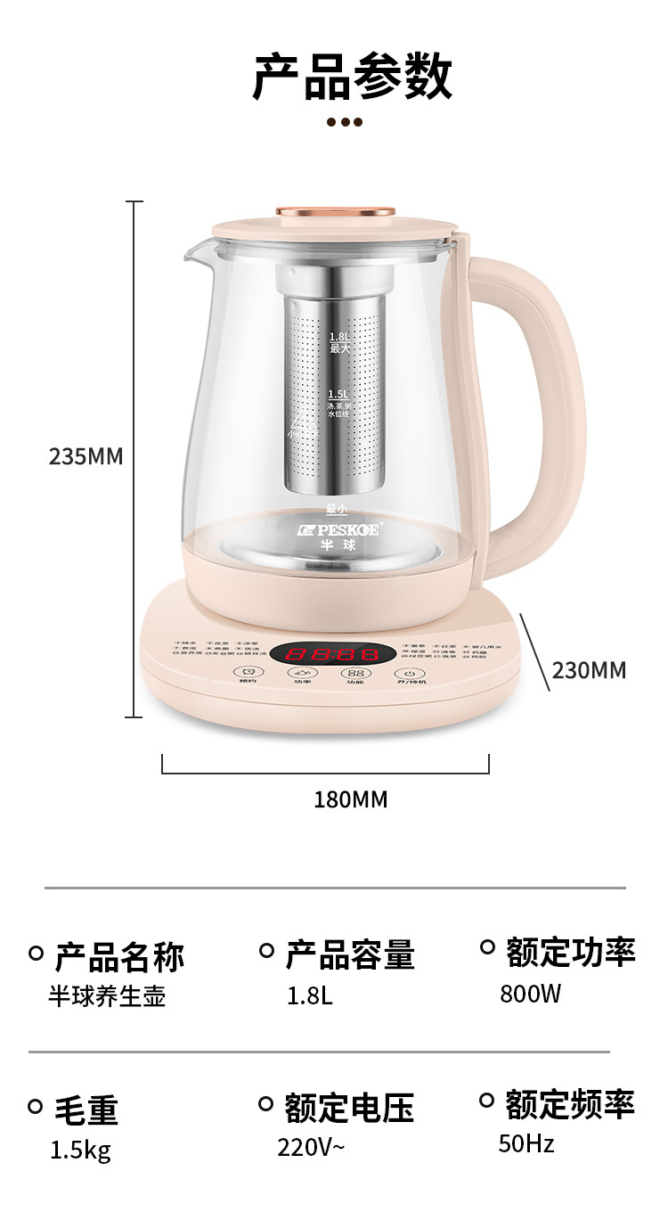 Чайник для здоровья Genuine, 1.8L, многофункциональный, для общежития, оптовая продажа, подарок