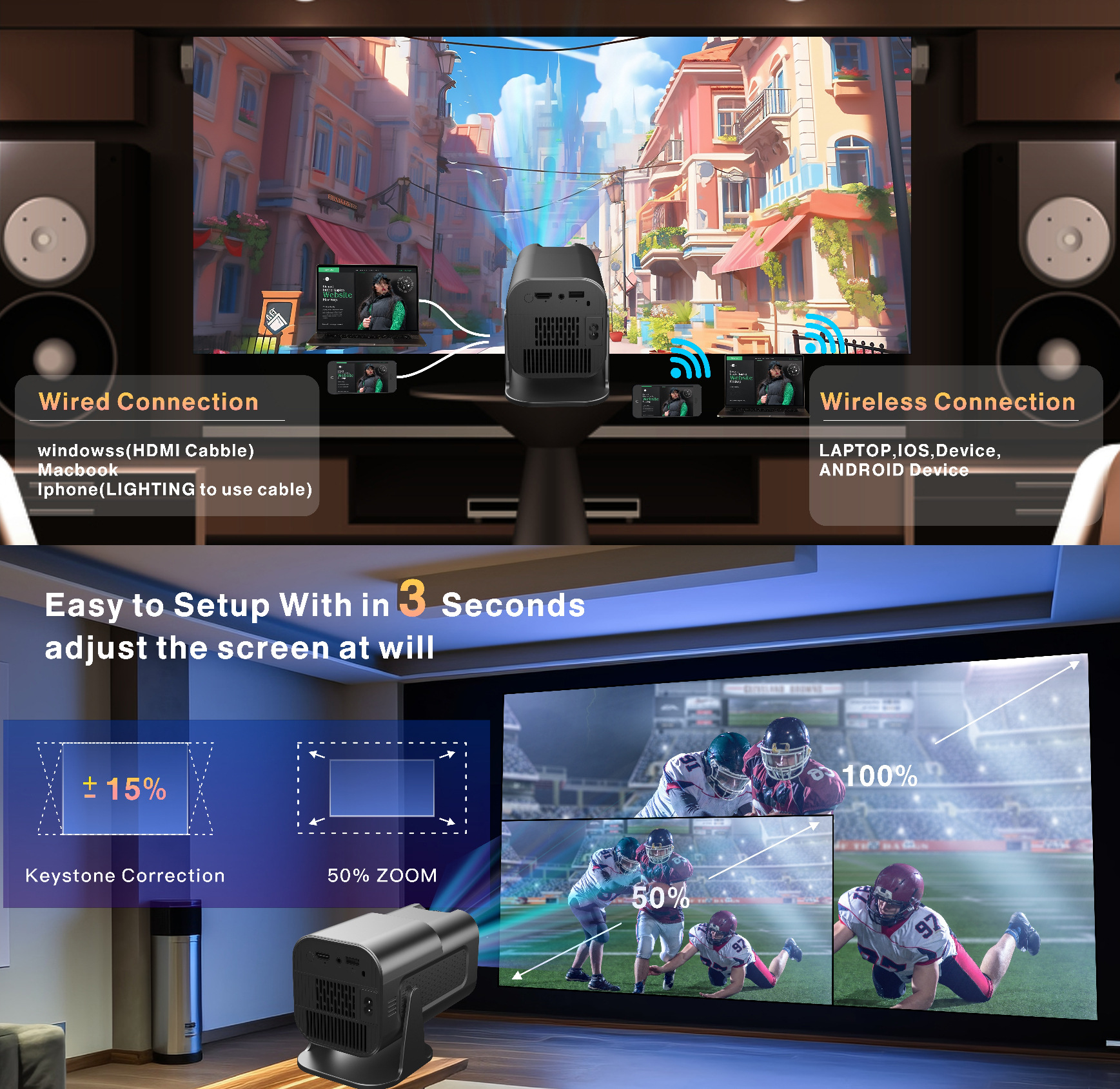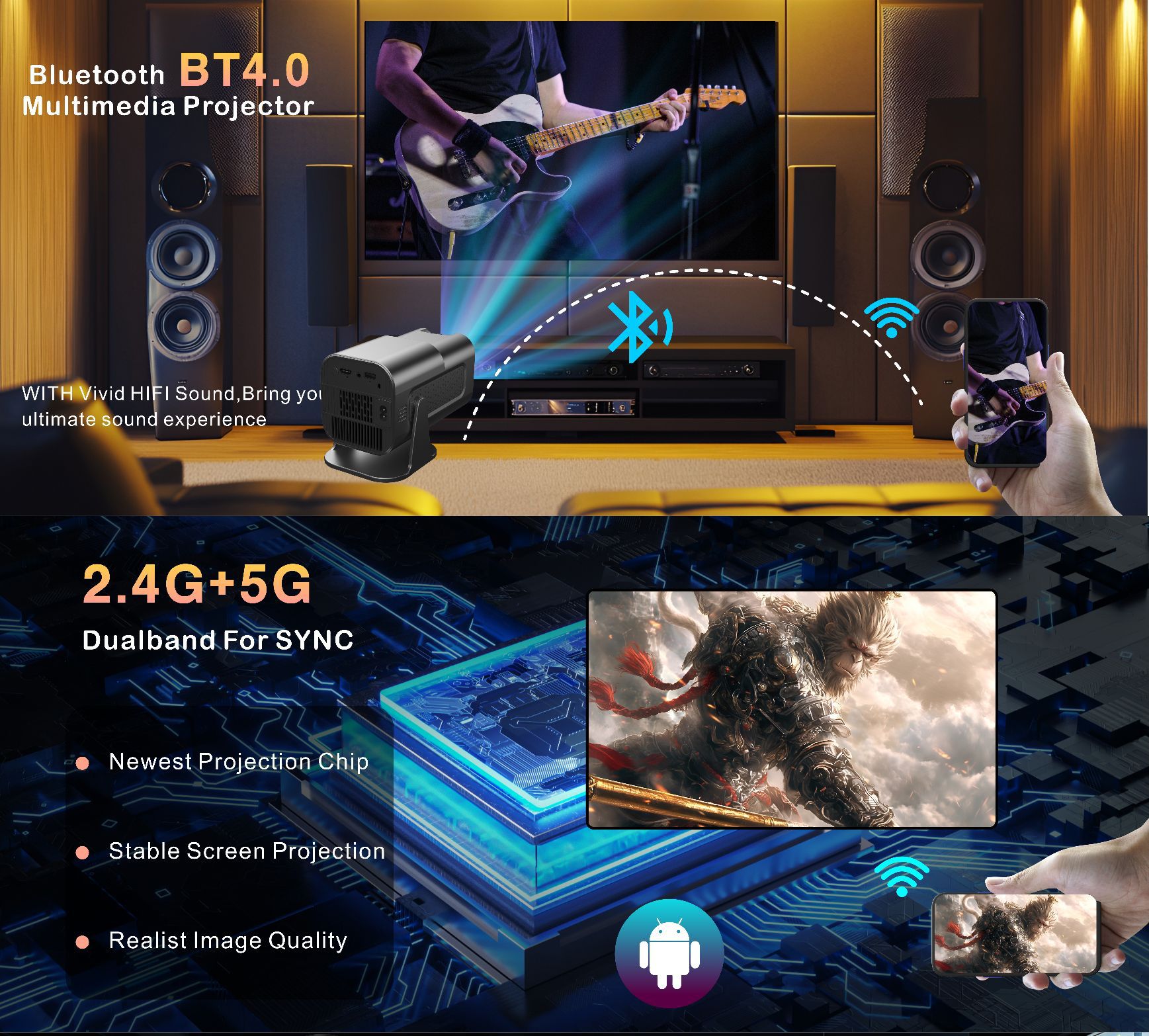 Удобный Проектор Домашнего Кинотеатра 1080P Версия с Одинаковым Экраном Умный Высокого Разрешения 4K Беспроводная Проекция H350