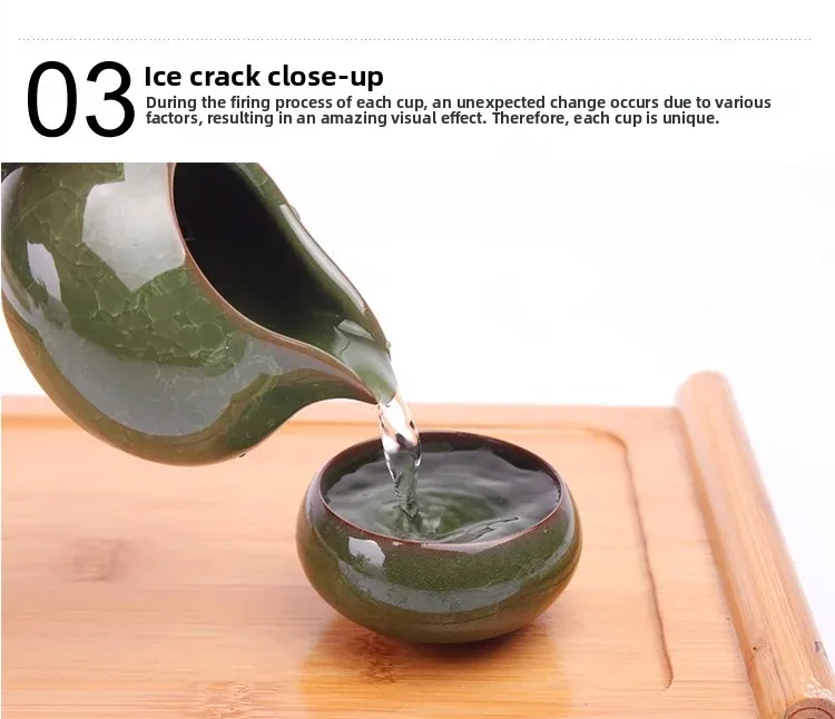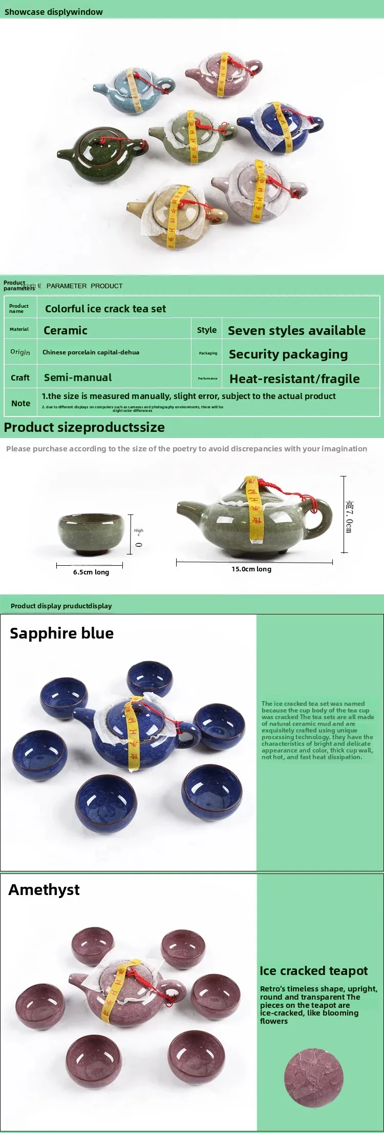- Elegant 7-Color Ice Cracking Glaze : Featuring a stunning 7-color ice cracking glaze, this tea set adds an elegant touch to any tea ceremony or gathering.