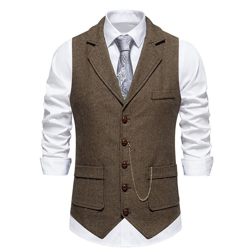 Экспорт 2025 Новый Европейский Размер Мужской Жилет из Твидовой Ткани Ретро Цепное Декоративное Жилет С Паттерном В Хвосте