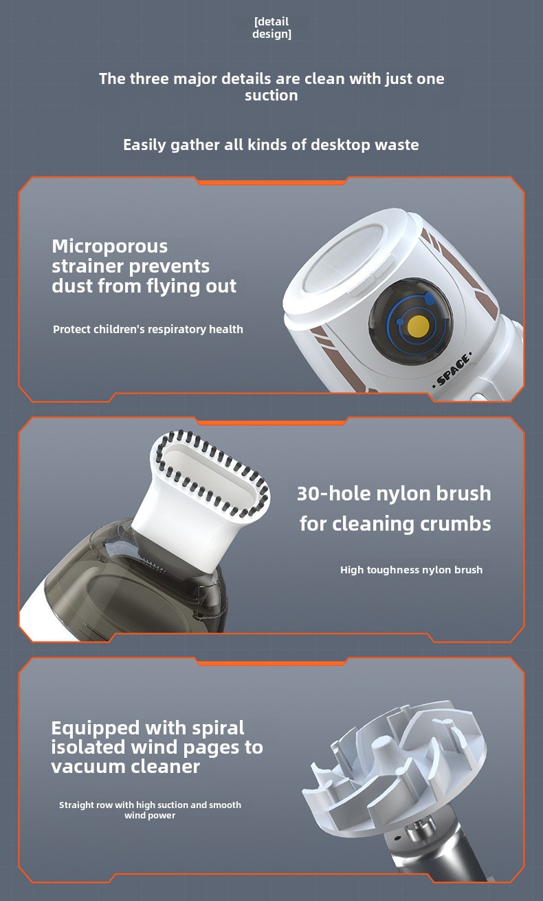 - Mini Desktop Style: Compact and stylish, our mini desktop vacuum fits perfectly on any desk, blending functionality with design.
