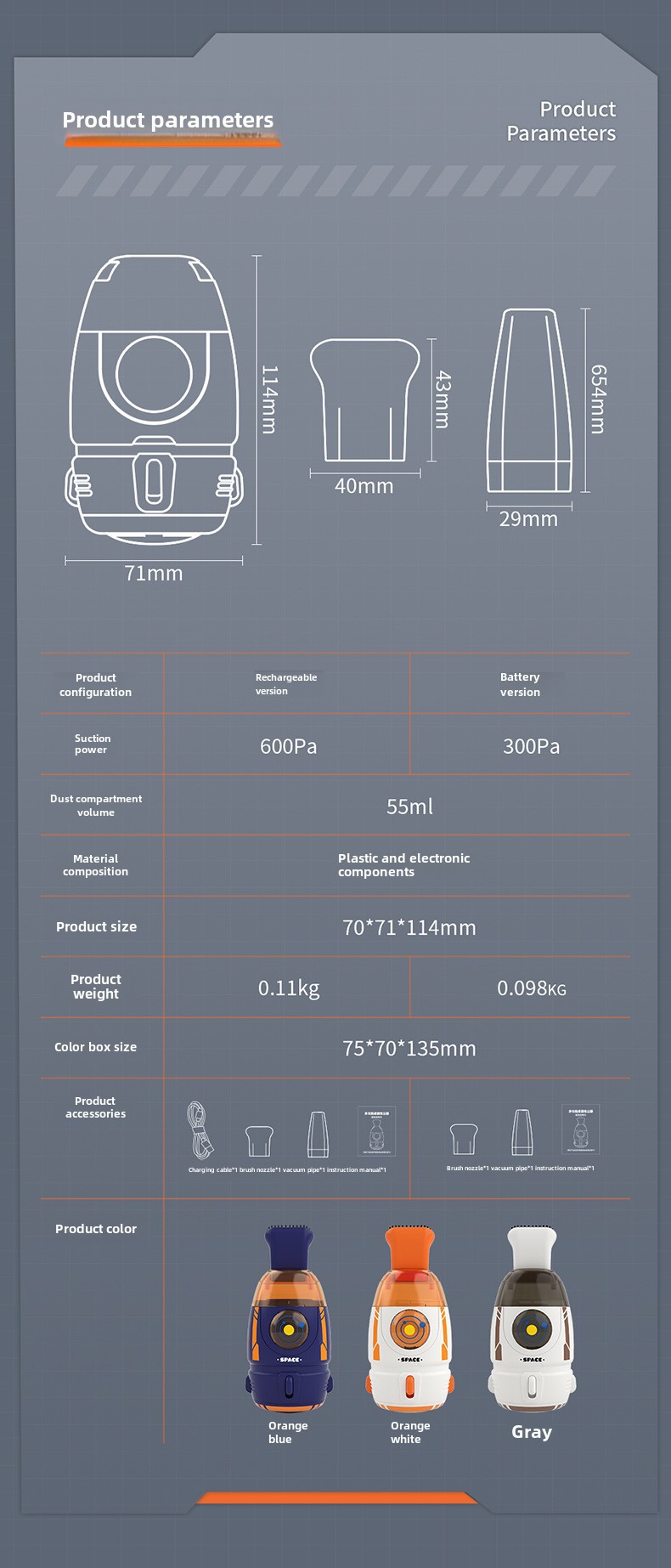 ![]() | Rocket vacuum cleaner [orange-USB charging version] Chinese version | ¥15.5 / ≈ 187 ₽ | 25324 | 5349718333209 |