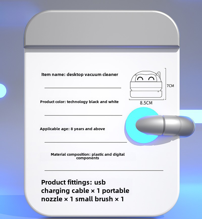 ![]() | Desktop vacuum cleaner white [USB charging] English version | ¥16.0 / ≈ 193 ₽ | 23179 | 5244217965199 | |
