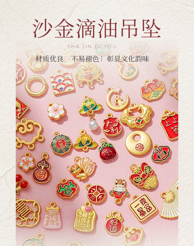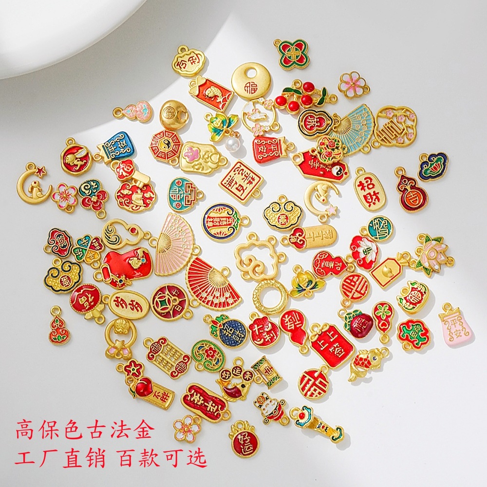 Подвеска в цвете древнего французского песчаного золота, национальный стиль, аксессуары, DIY, благословение, новогодний транспорт, ручная работа, ожерелье, браслет