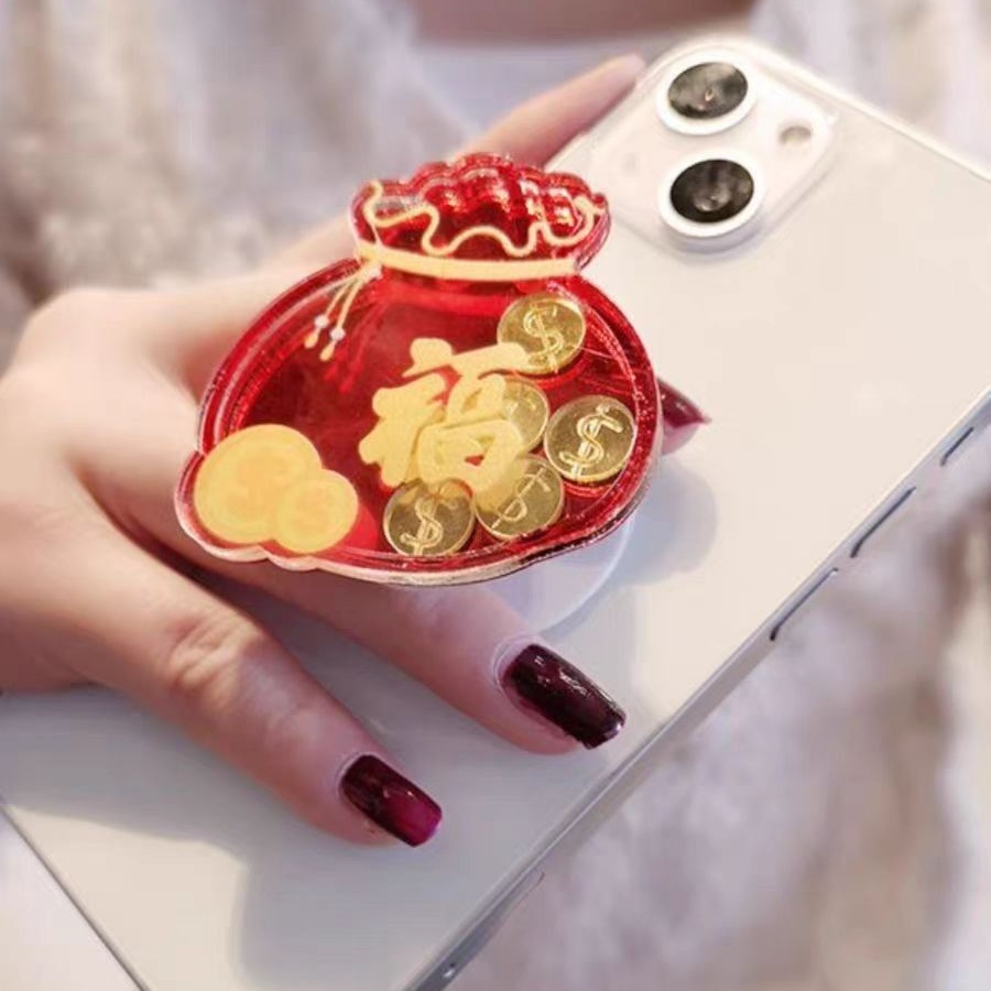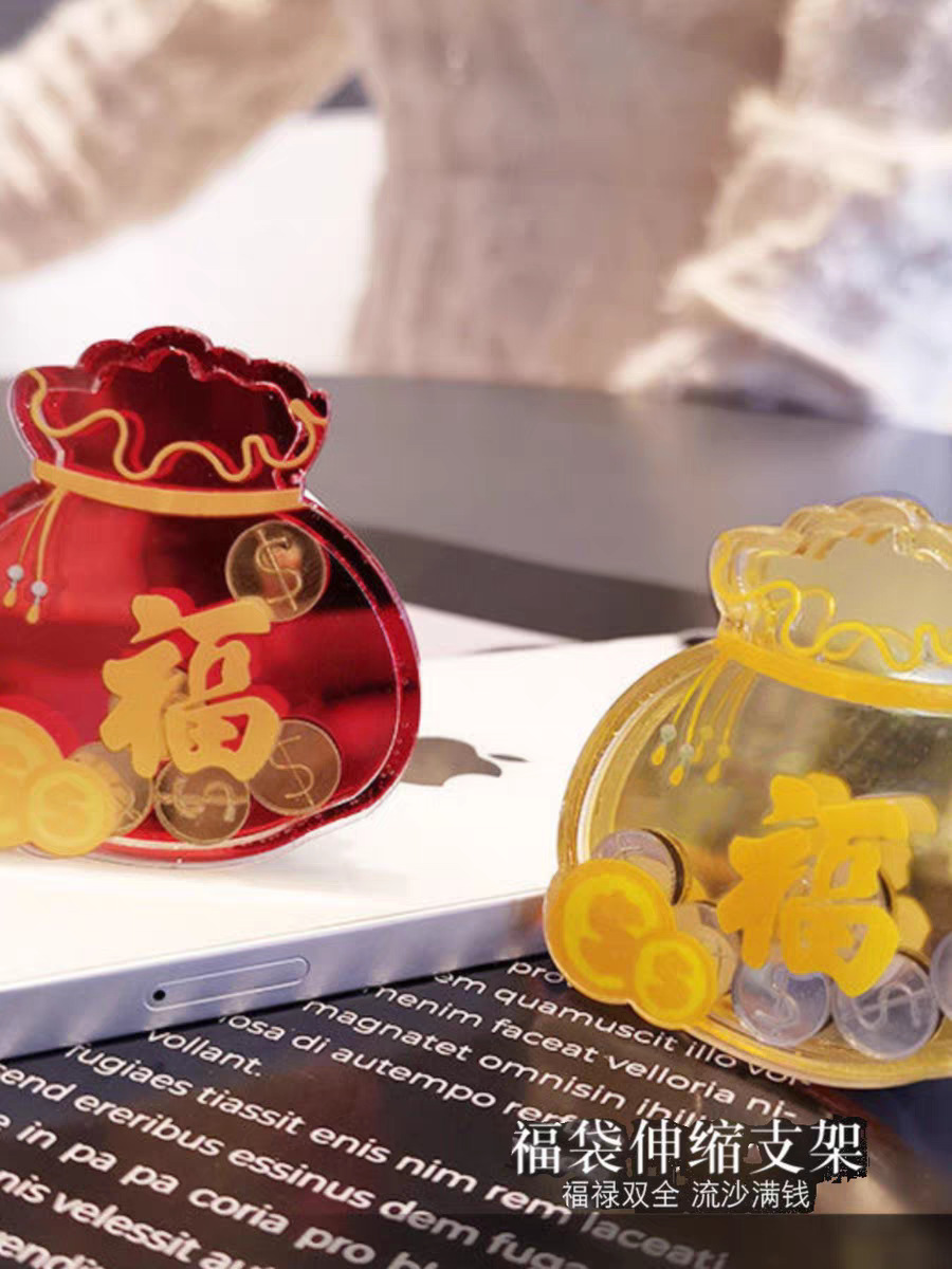 Держатель для мобильного телефона с жидким песком, сумка для денег, пальцевой замок, новогодняя удачная сумка, многофункциональный клейкий чехол универсальный