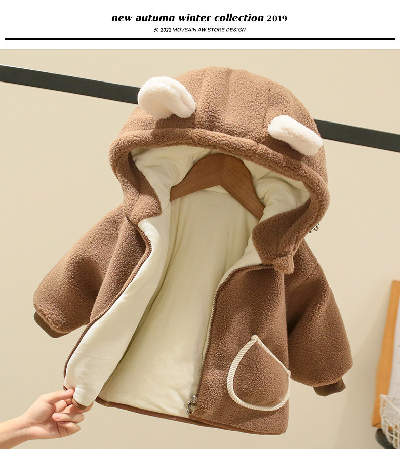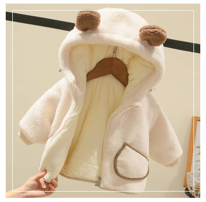 Детская зимняя одежда из бархата для мальчиков и девочек, теплый и утолщенный детский комбинезон с капюшоном из овечьей шерсти и хлопка