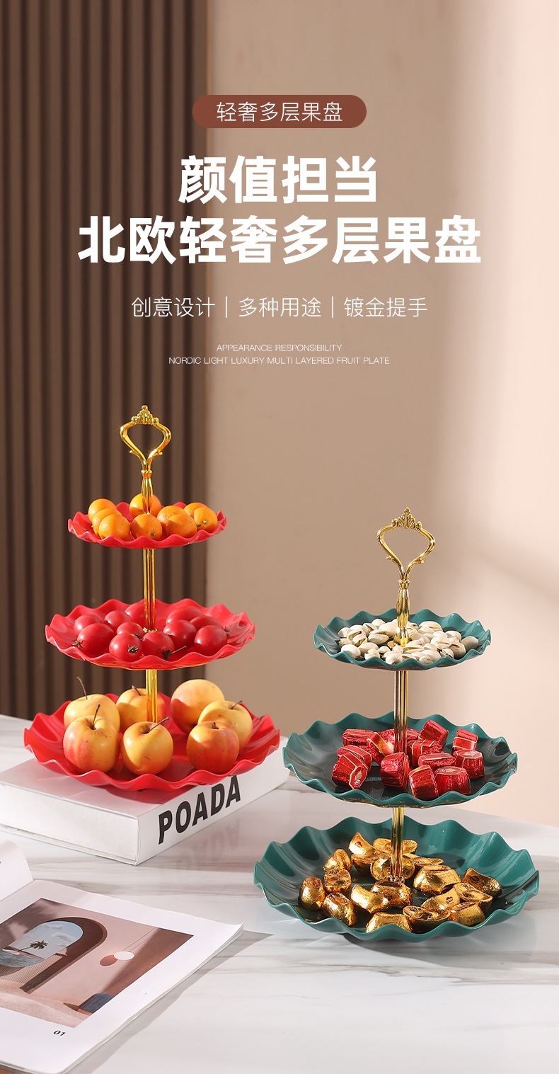 Легкая роскошная закусочная тарелка, трехуровневая фруктовая тарелка, скандинавский стиль, пластиковая фруктовая тарелка, тарелка для сухофруктов, для гостиничного зала