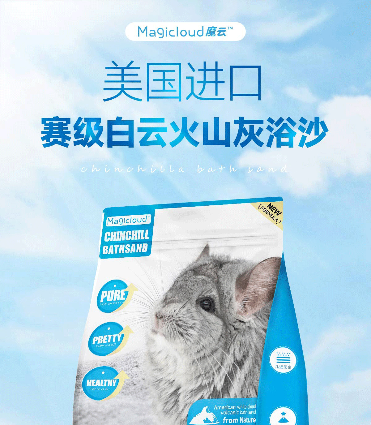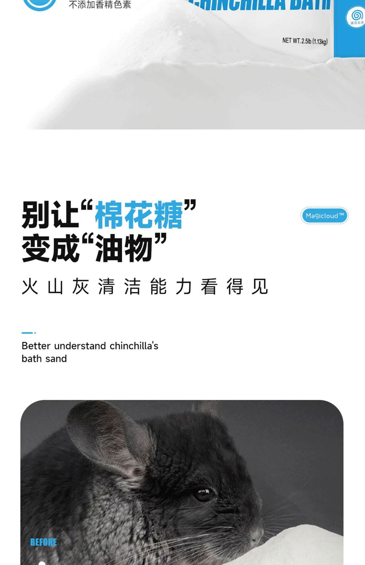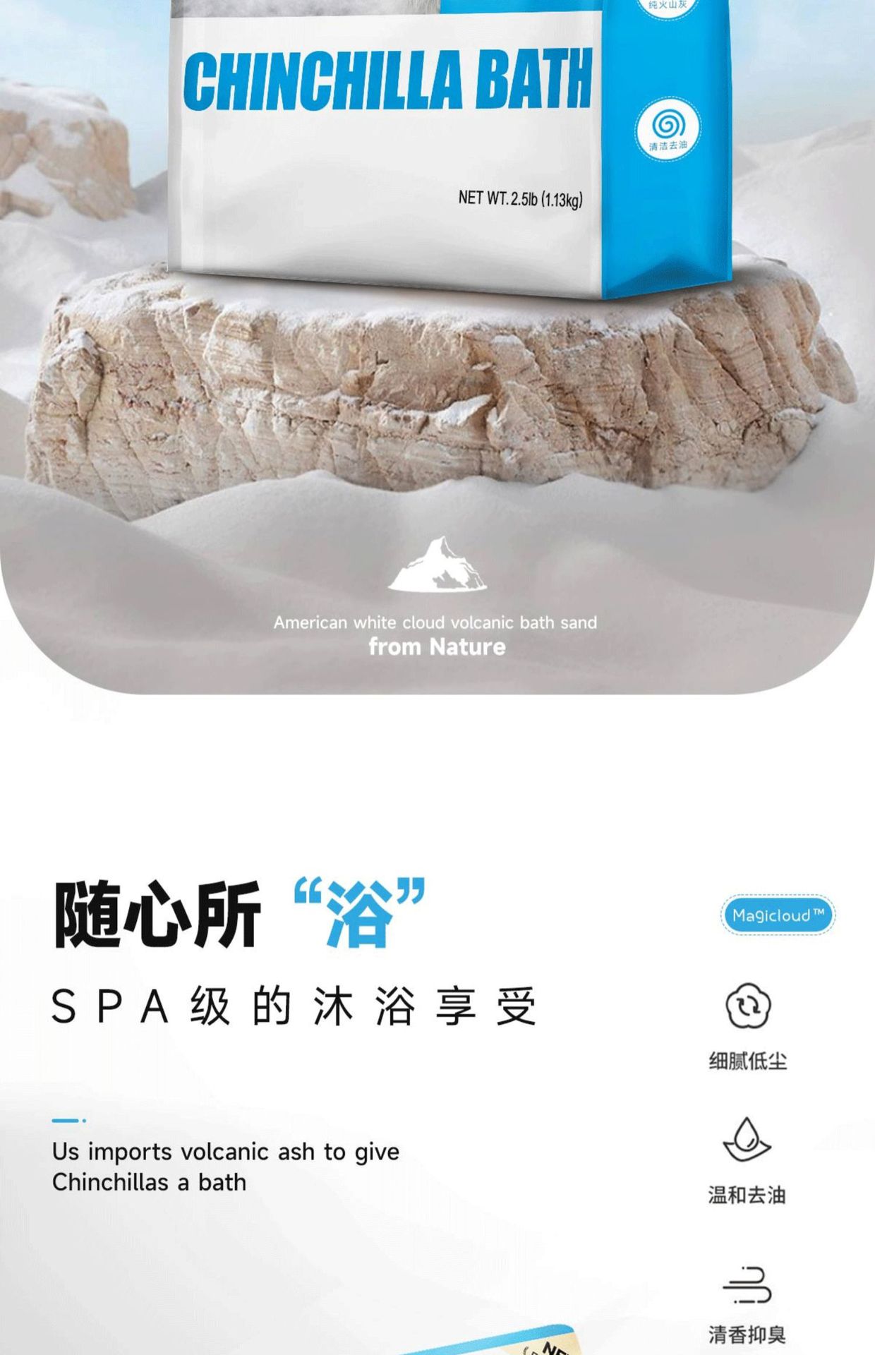 Волшебный облачный песок для купания шиншилл, импортированный из США, 2.5 фунта, конкурсный класс, вулканический пепел