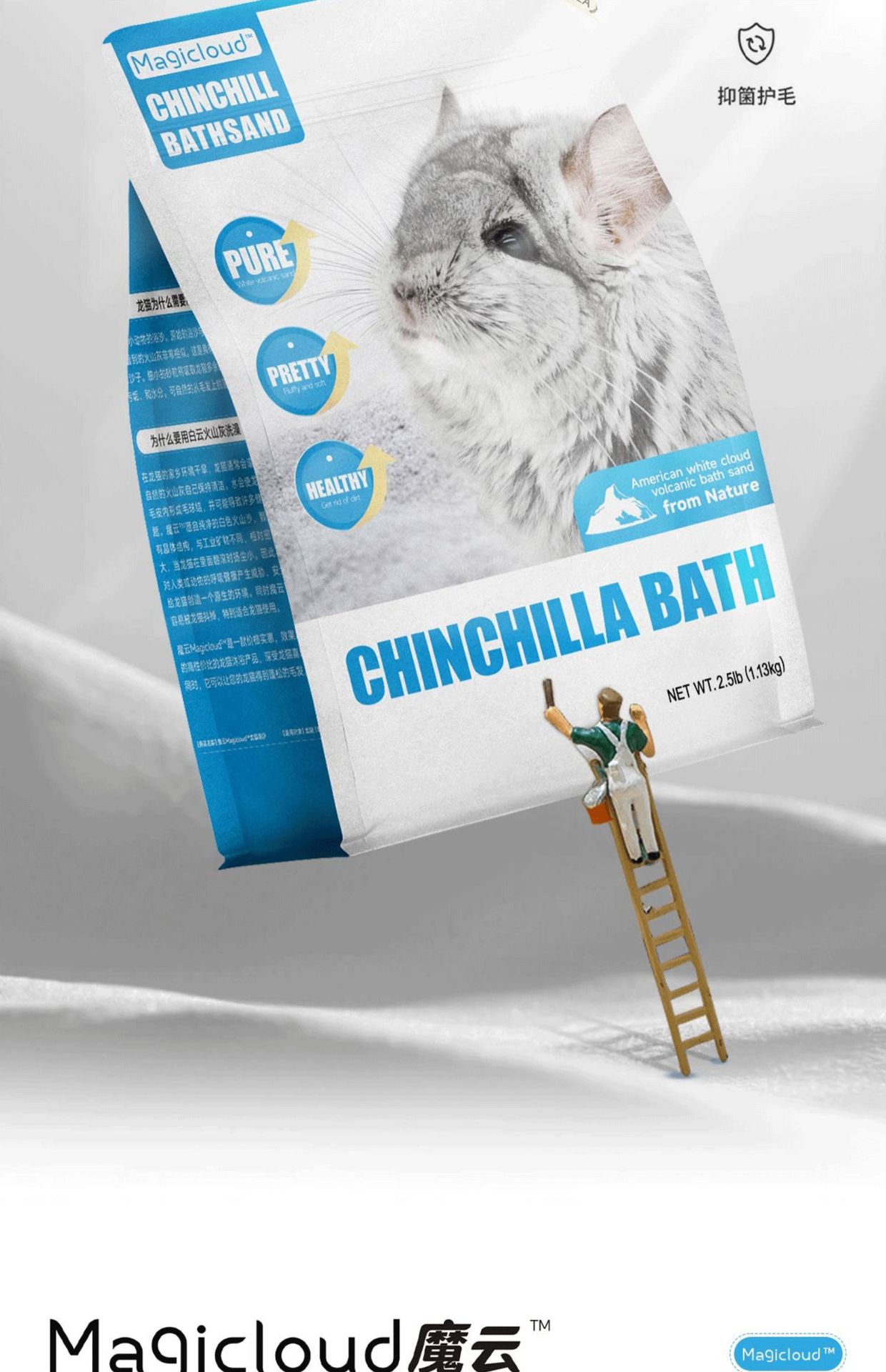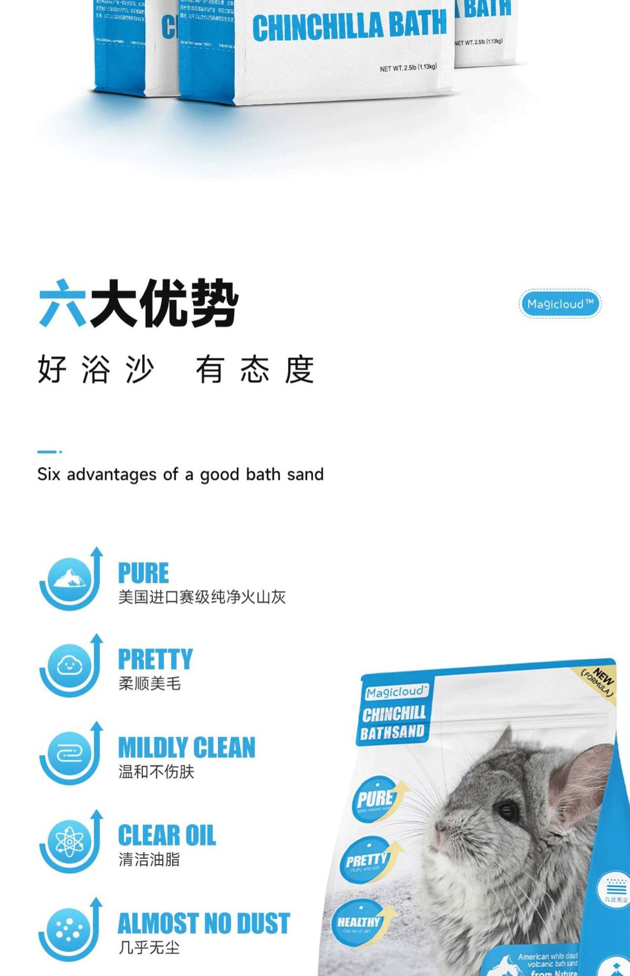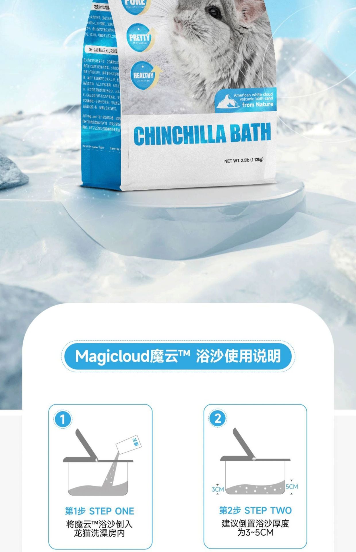 Волшебный облачный песок для купания шиншилл, импортированный из США, 2.5 фунта, конкурсный класс, вулканический пепел