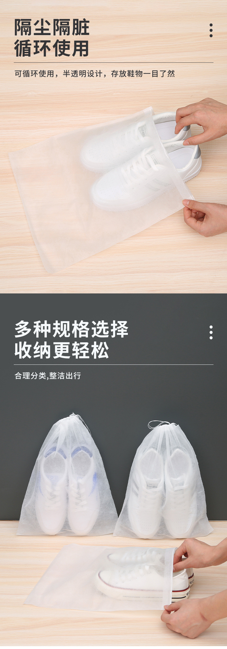 Нетканая сумка для обуви, сумка с завязками, чехол для обуви, малый белый, против пожелтения, защита от солнца, утолщенная, пылезащитная и плеснеустойчивая