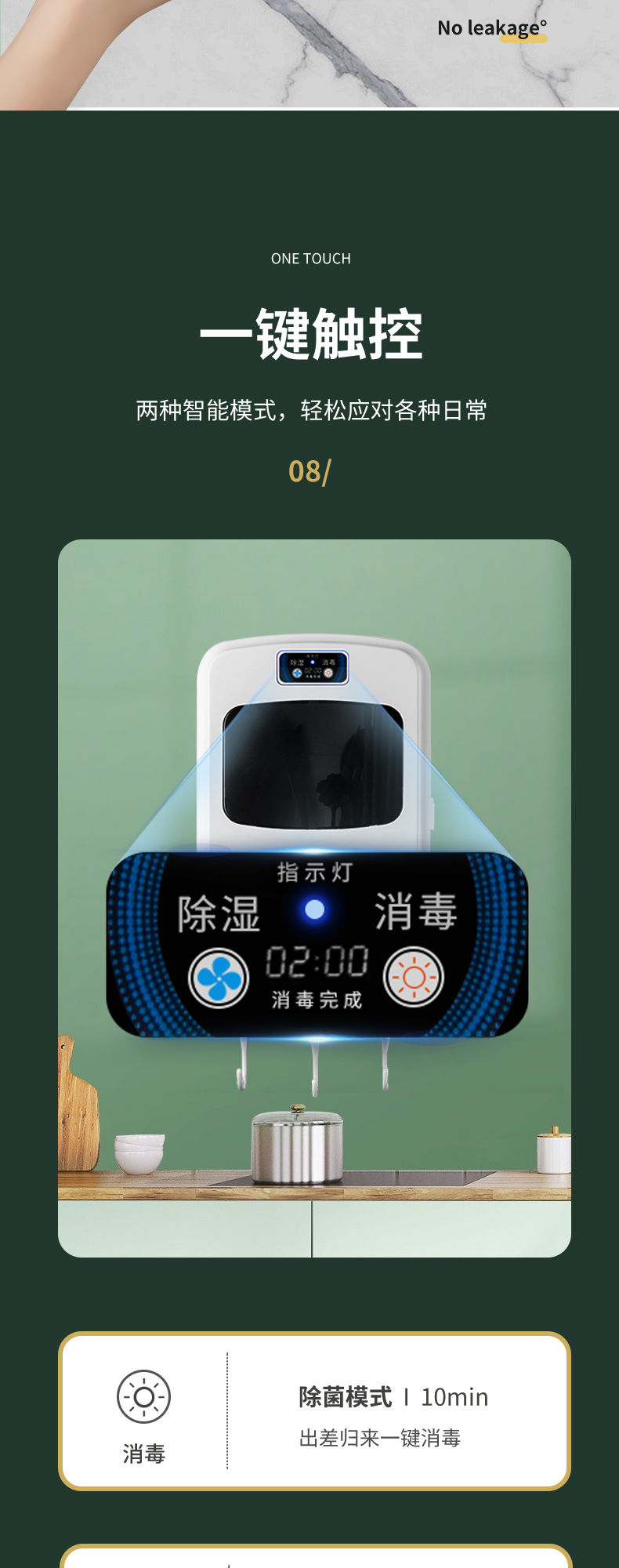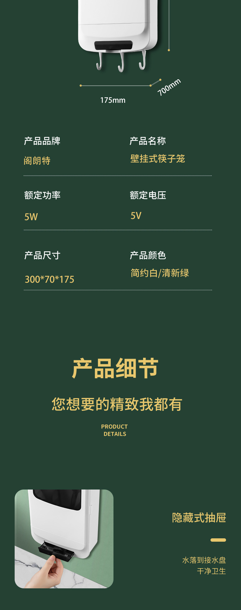 Стерилизатор для палочек для еды с боковым открытием без сверления, интеллектуальная стерилизация, пылезащитный, с сушкой и сливом, контейнер для хранения палочек для еды