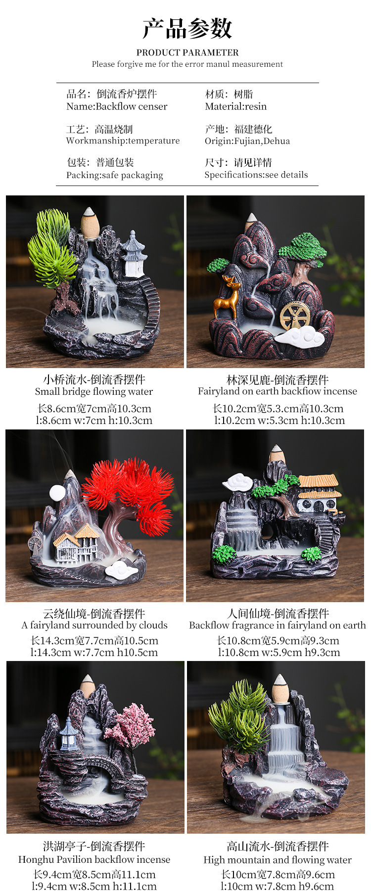 Прямые поставки, креативная смола, маленькая курильница с обратным потоком, высокогорная вода, сандал, агаровое дерево, курильница для домашнего декора