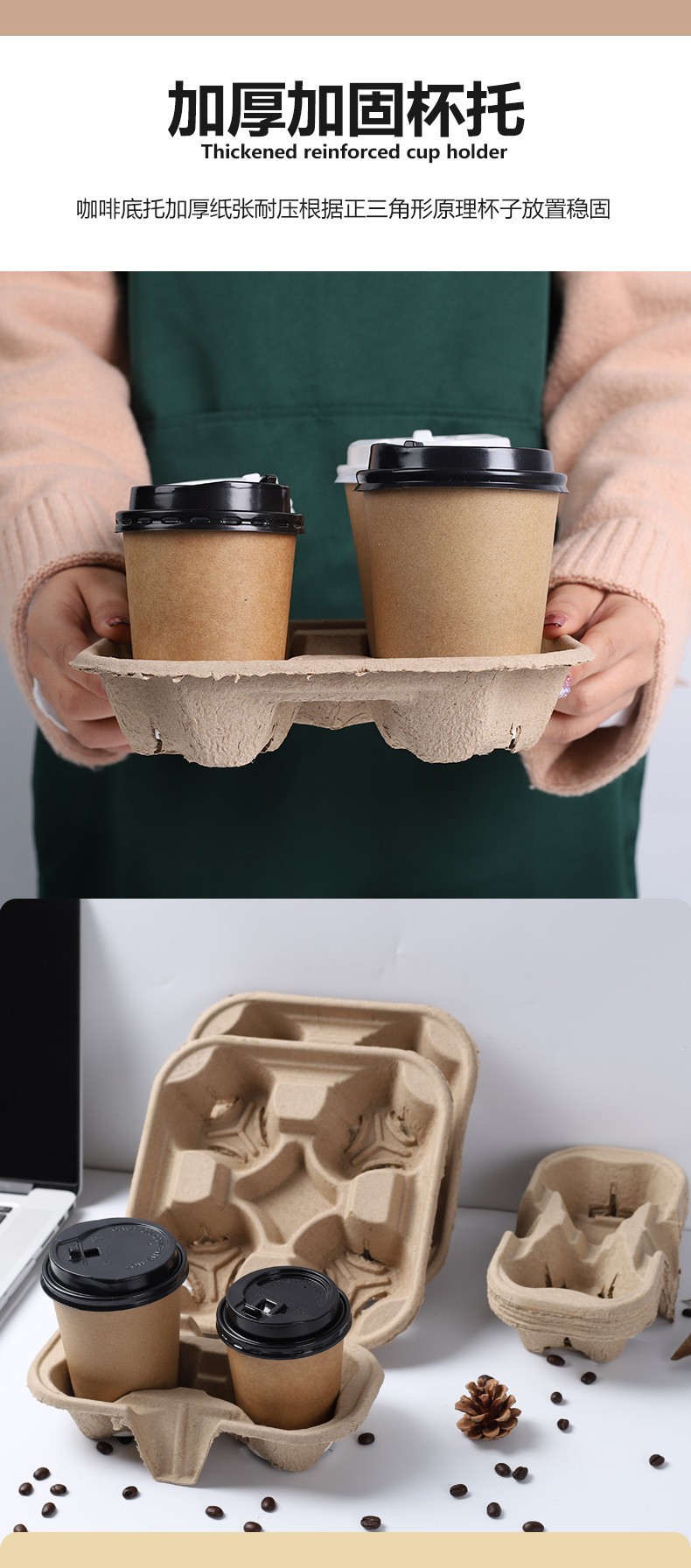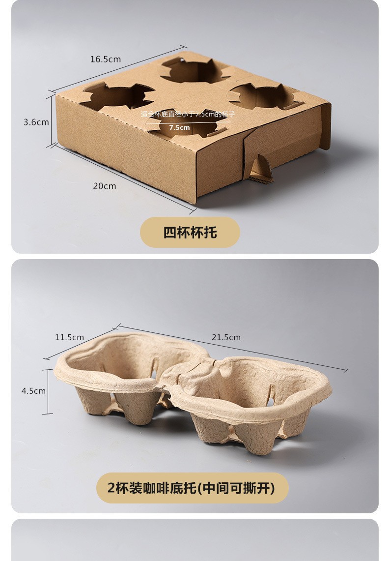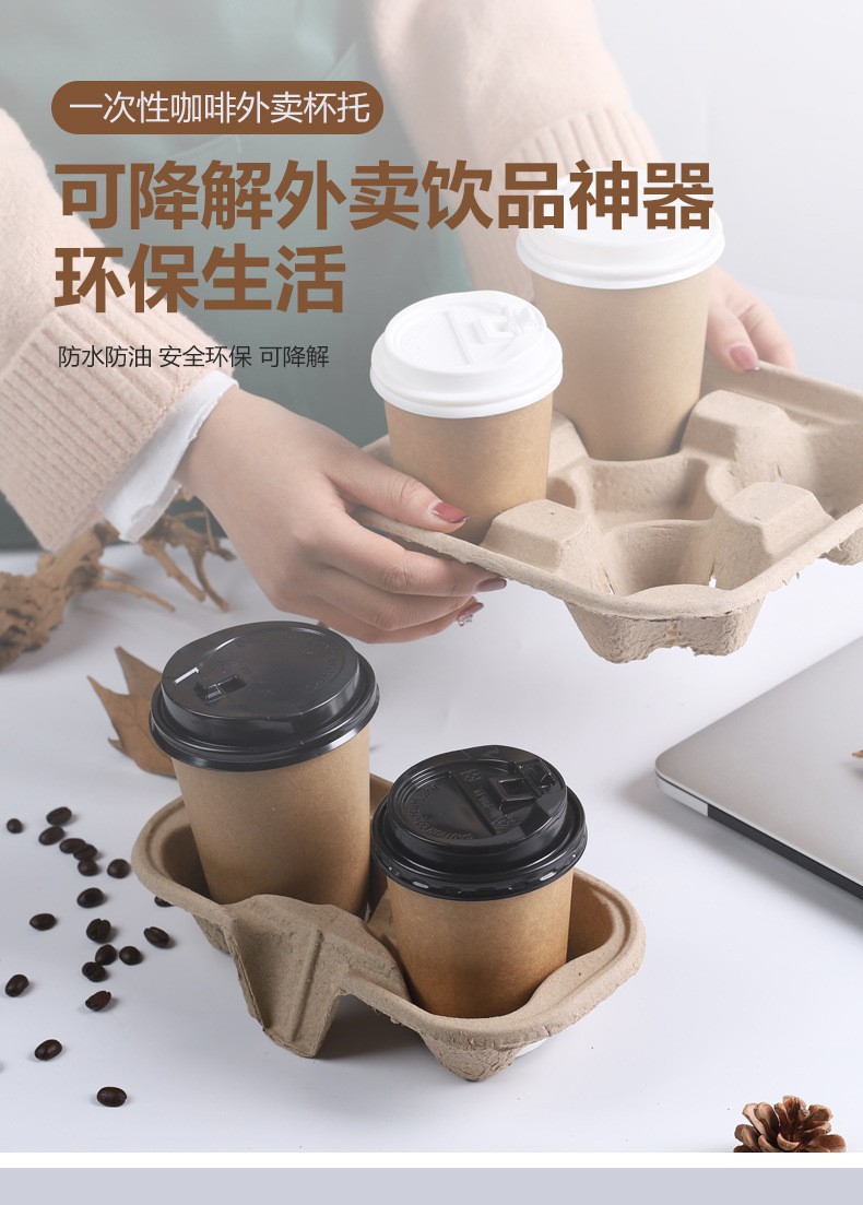 Разрывной держатель на четыре стакана, одноразовый, из целлюлозы, для кофе и молочного чая, биоразлагаемый