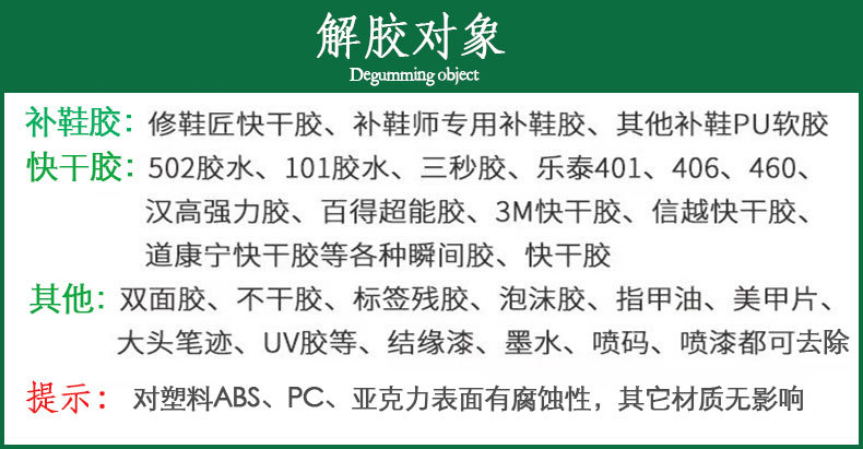 Тип очистки Solution 502 glue, 401 glue, double-sided tape, large pen uv glue and other glues