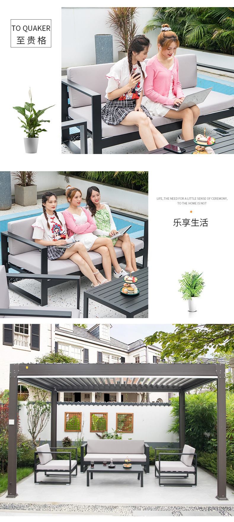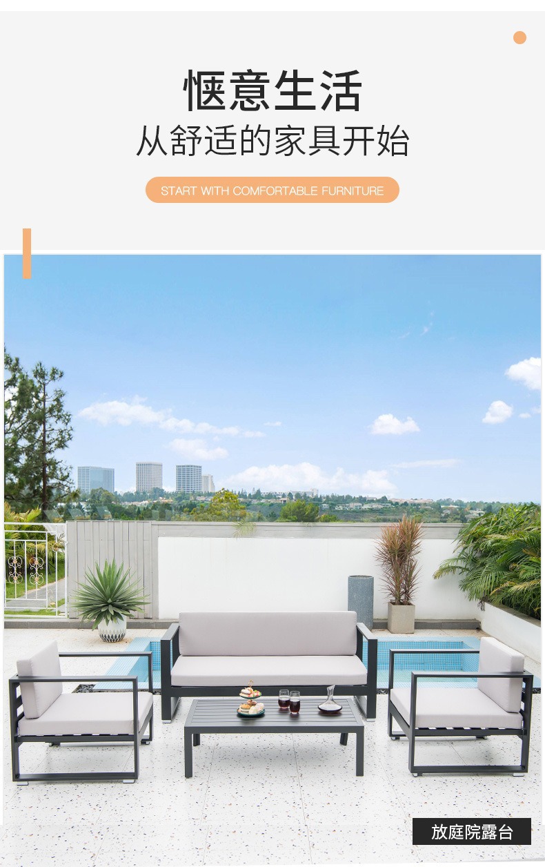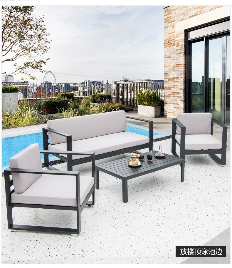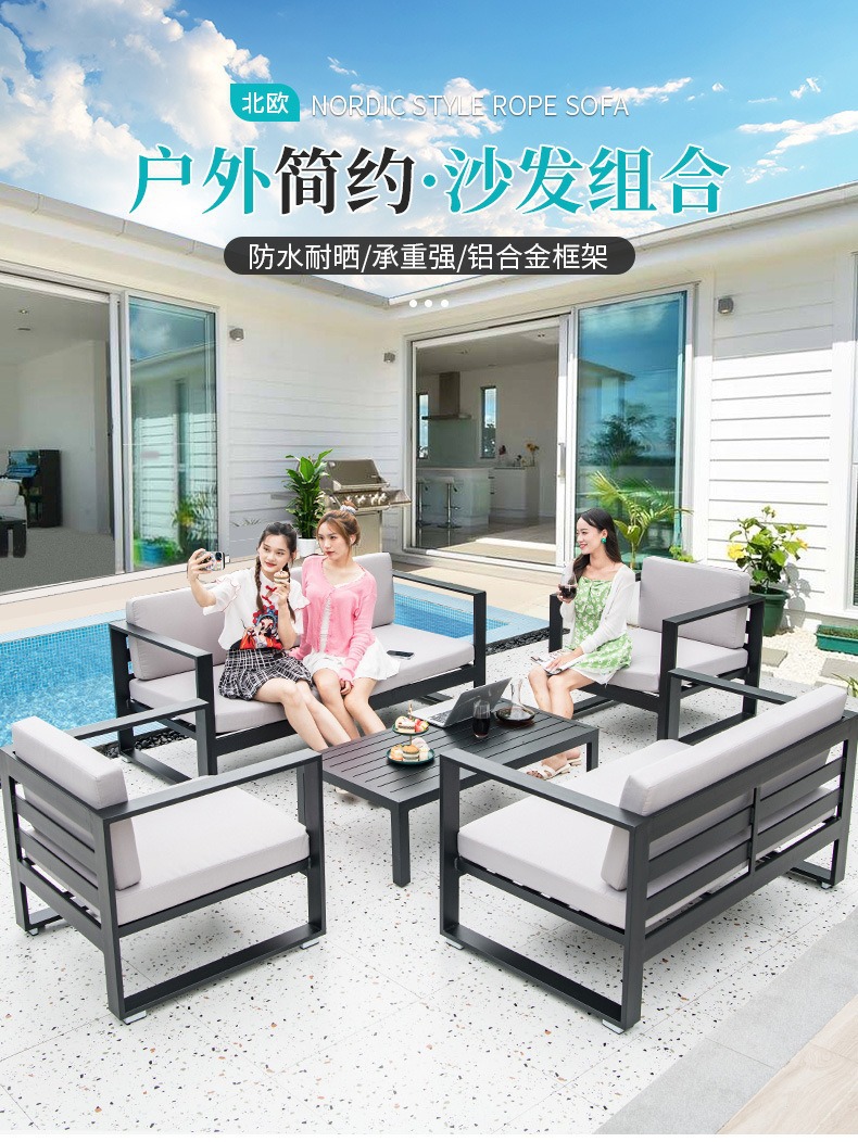 Софа из металла для улицы Nordic, водонепроницаемая, с защитой от солнца, дизайнерская мебель для отелей, алюминиевый сплав