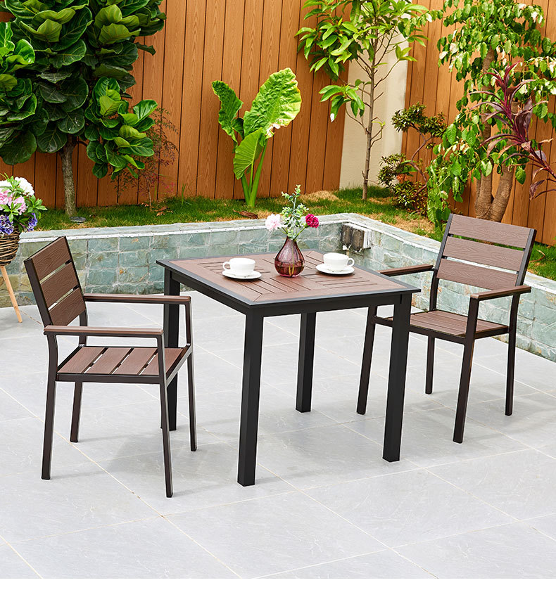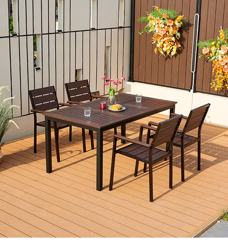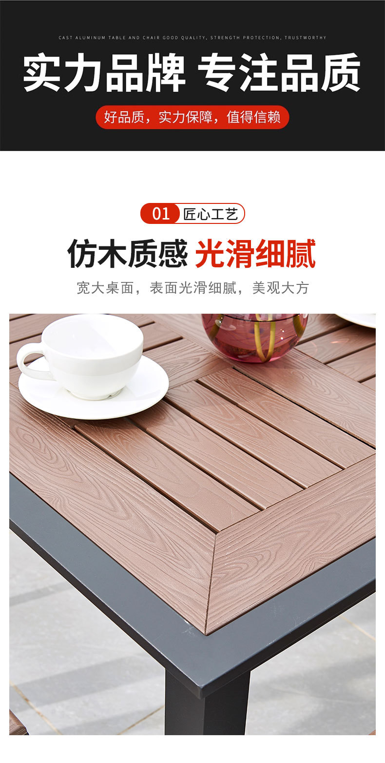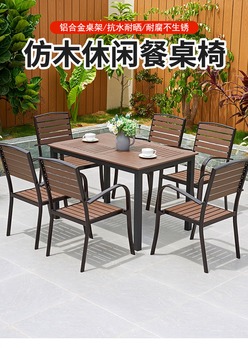 Индивидуальный коричневый обеденный стол и стулья, уличный алюминиевый стол и стулья под дерево, современный доступный люкс, стол и стулья для молочного чая и кофе