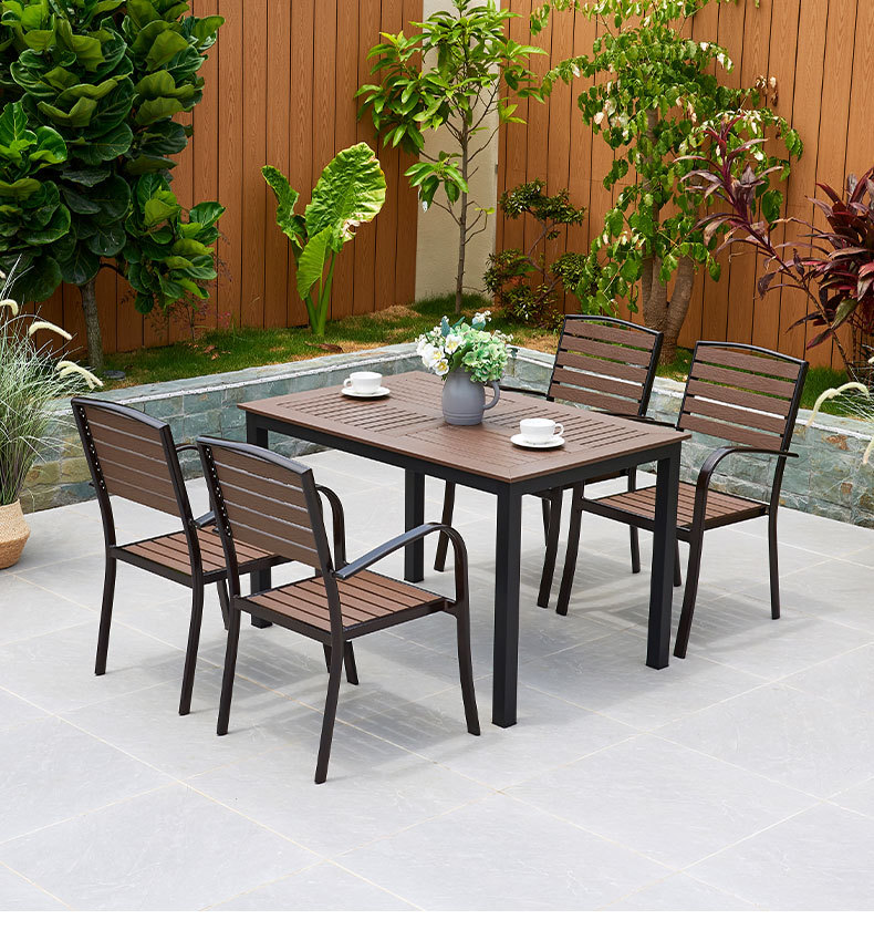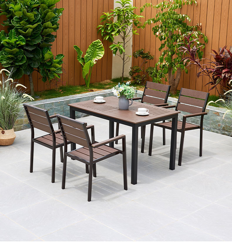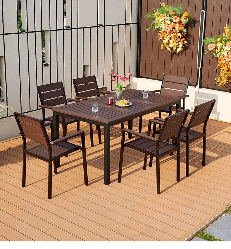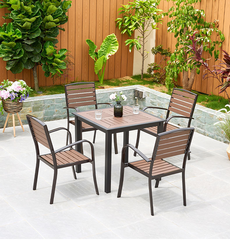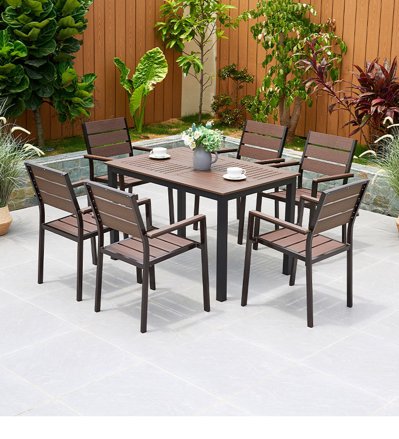 Индивидуальный коричневый обеденный стол и стулья, уличный алюминиевый стол и стулья под дерево, современный доступный люкс, стол и стулья для молочного чая и кофе