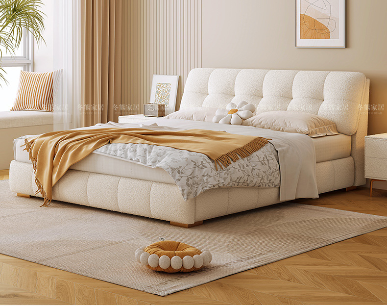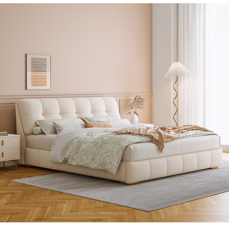 Кровать Tong Yute в северном современном стиле легкой роскоши кремового цвета с мягким наполнителем для двуспальной спальни