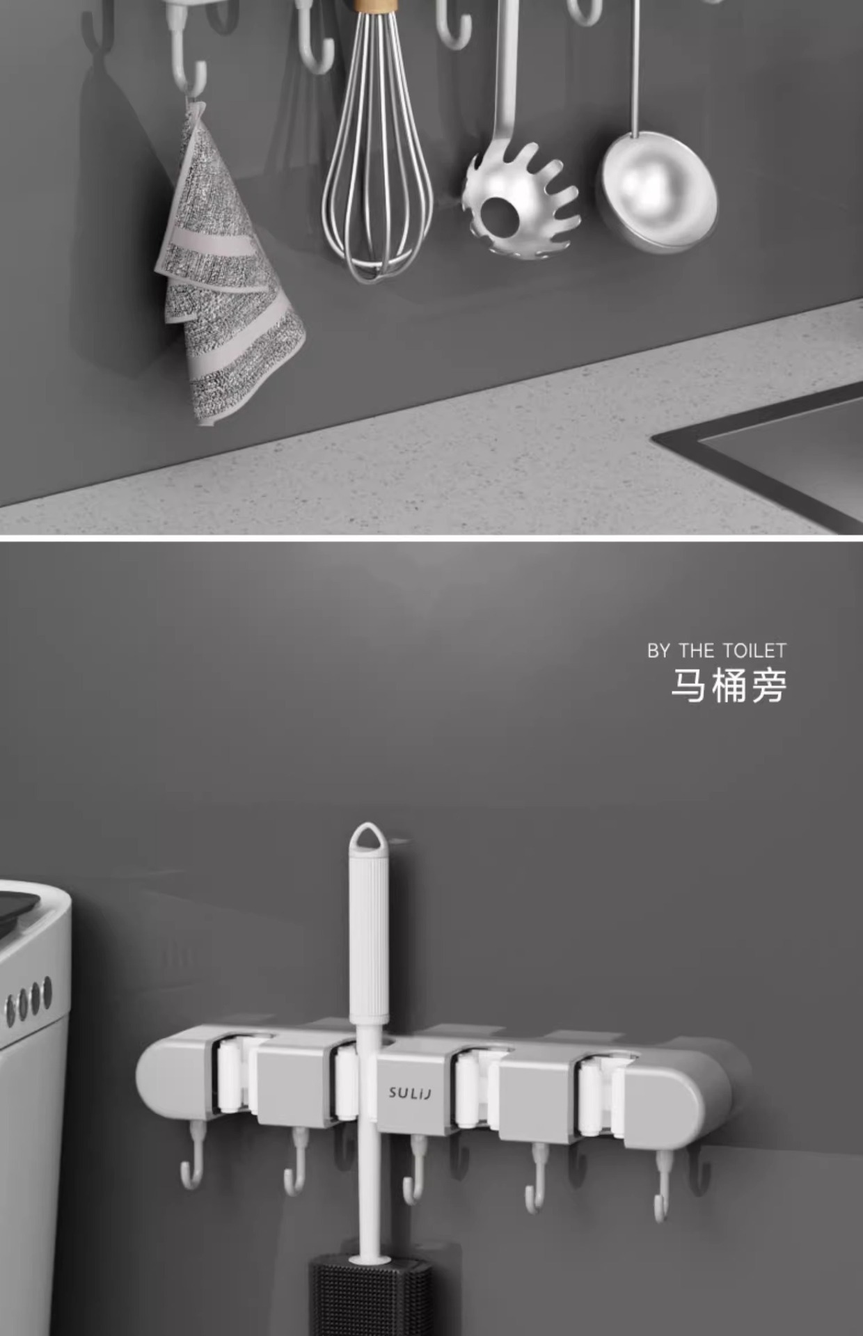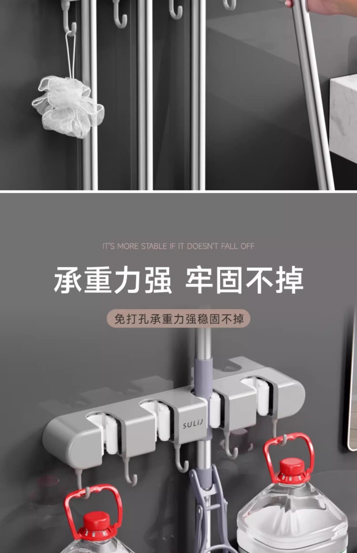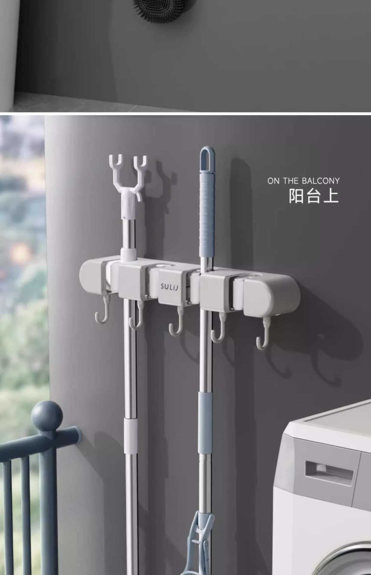 Настенный стеллаж для швабры, без сверления, крючок для балкона, туалета, фиксация для хранения