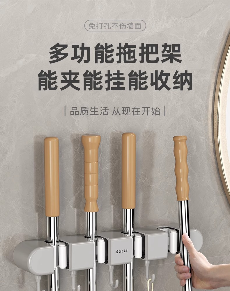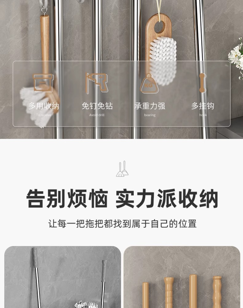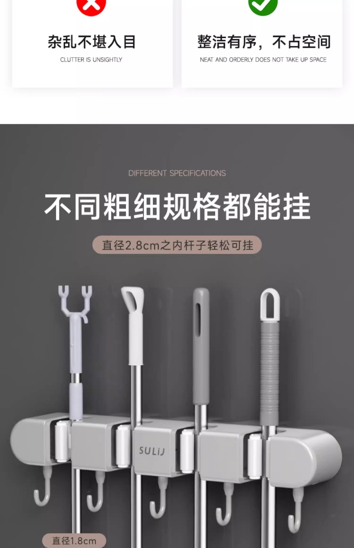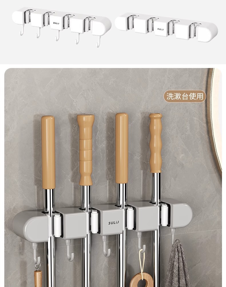Настенный стеллаж для швабры, без сверления, крючок для балкона, туалета, фиксация для хранения