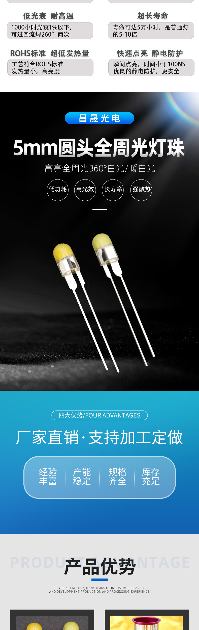 Номер товара 5mm round head 0.5w360°Glowing all around light