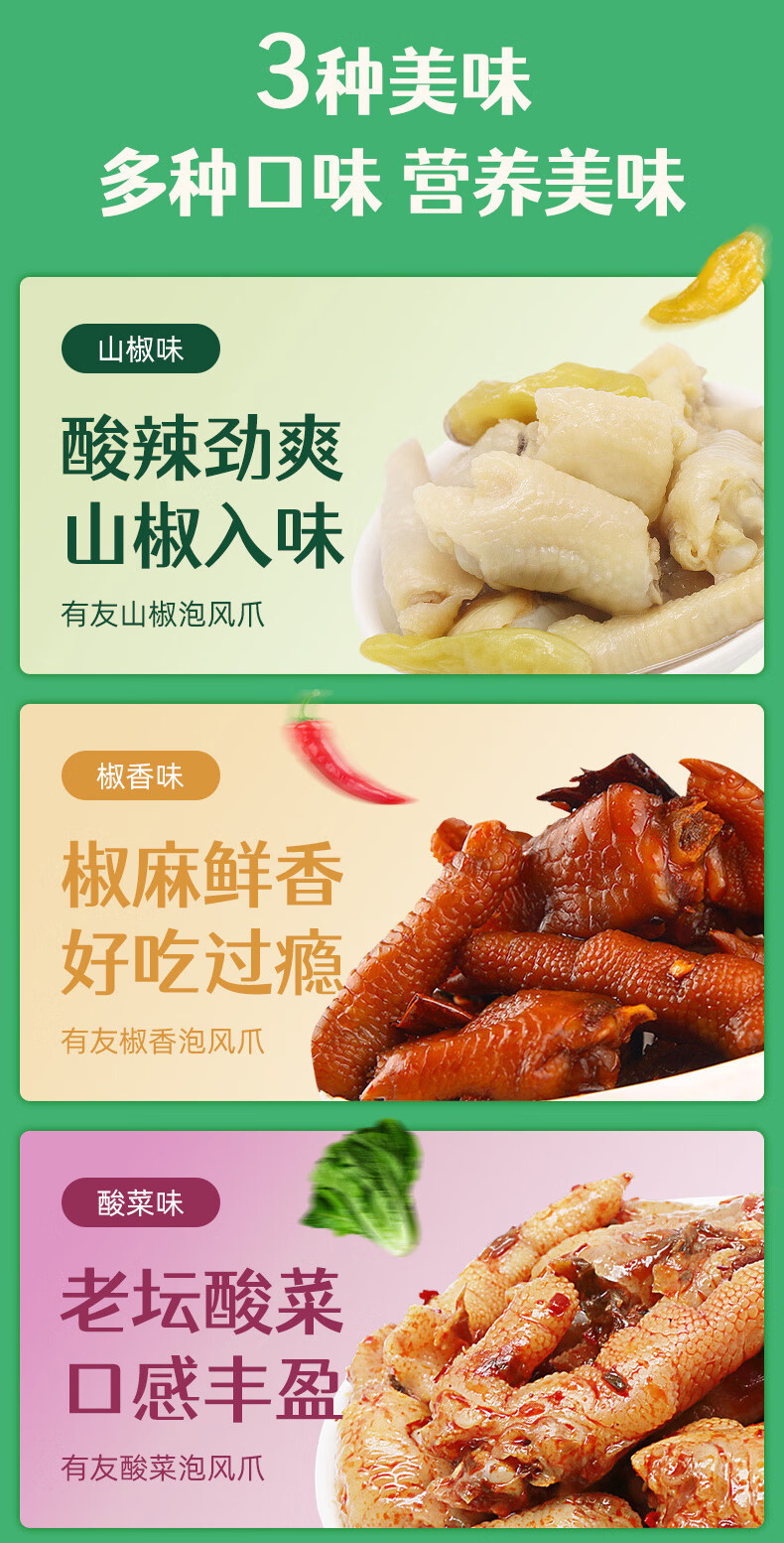 ![]() | Youyou soaked chicken feet [80g] pickled vegetable flavor (single bag) | ¥5.19 / ≈ 63 ₽ | 0 | 5283162968586 | |