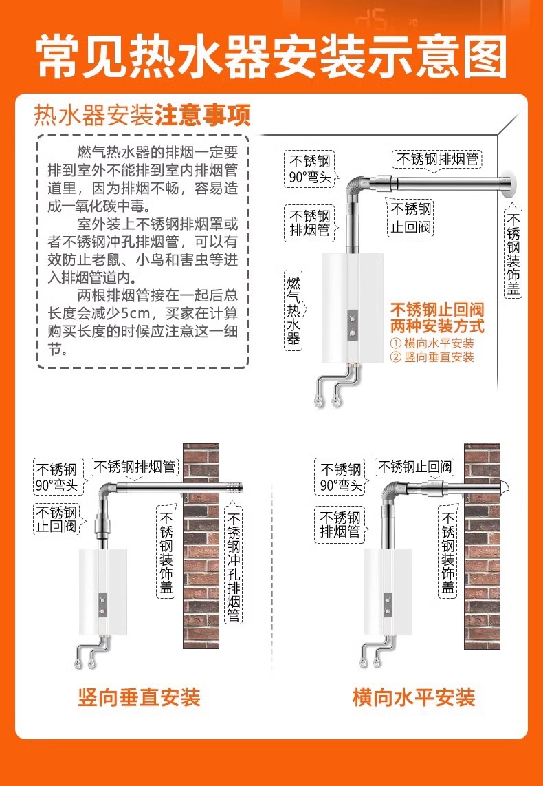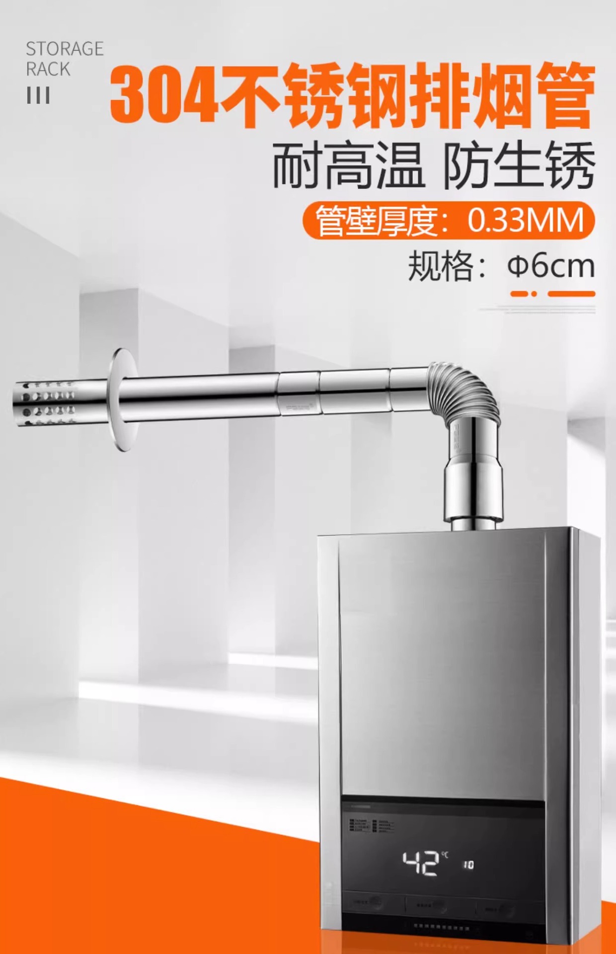 Аксессуары для вытяжной трубы газового водонагревателя в ванной, полная нержавеющая сталь, вытяжная труба, газовый дымоход, длинный воздуховод
