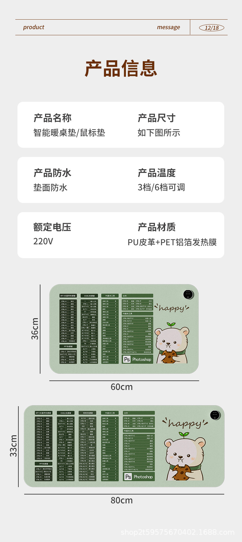 ![]() | Happy panda | 60*36 button smart version [led three-speed temperature adjustment] | ¥15.0 / ≈ 178 ₽ | 35456 | 5596297797797 | |