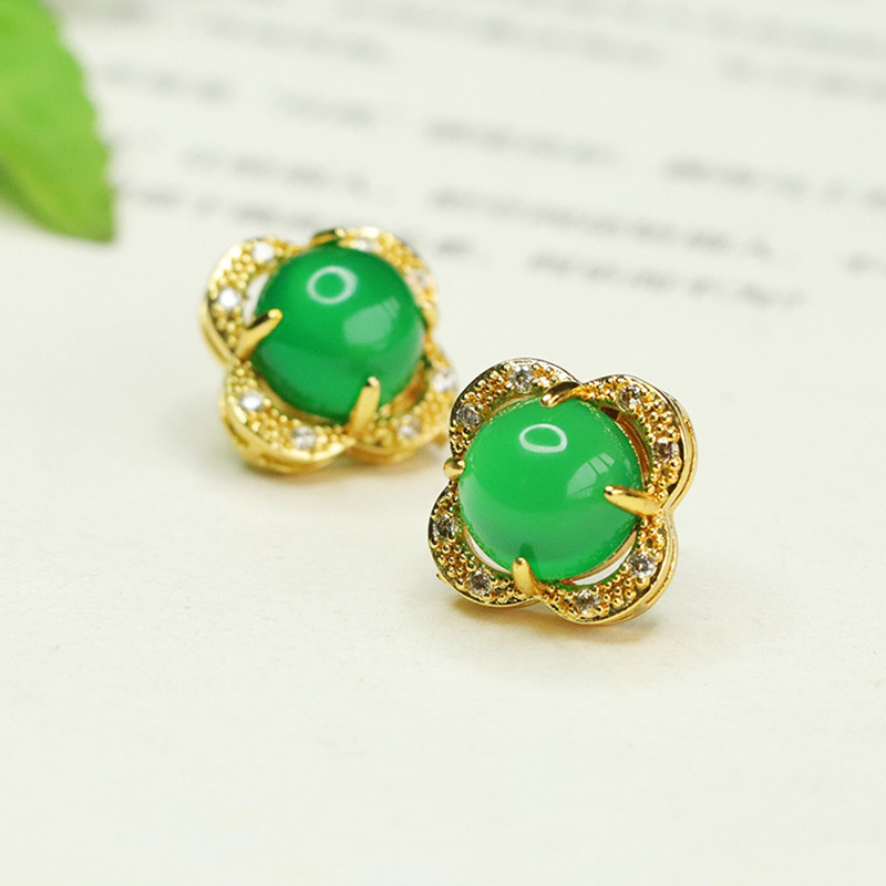 Серьги из зеленого агата Aiyu, ледяной зеленый халцедон, серьги с четырехлистным клевером, оптовая продажа AY4013007