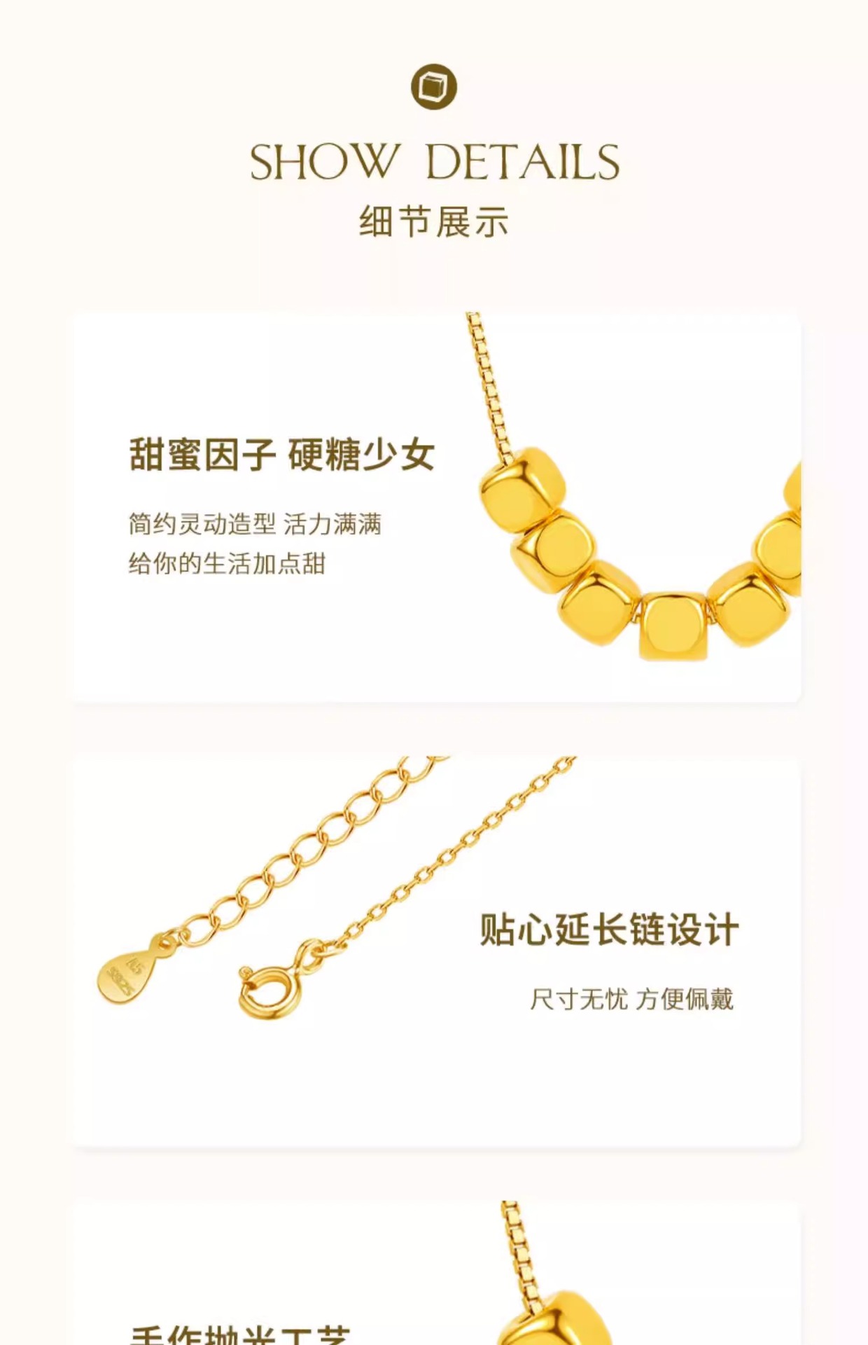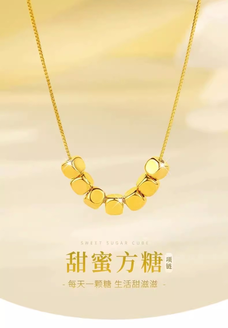 Небольшое ожерелье с сахарным кубиком 999 чистого золота, кулон из чистого золота, 3D твердые золотые бусины, золотая раковина, подарок для девушки