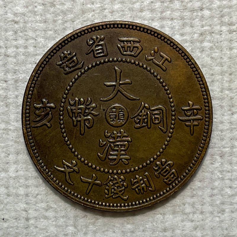 Ручная медная монета с бронзовым покрытием, Цзянси, Ганьшэньхай, Хан, десять вэнь, 28 мм, 7.3 г, коллекция