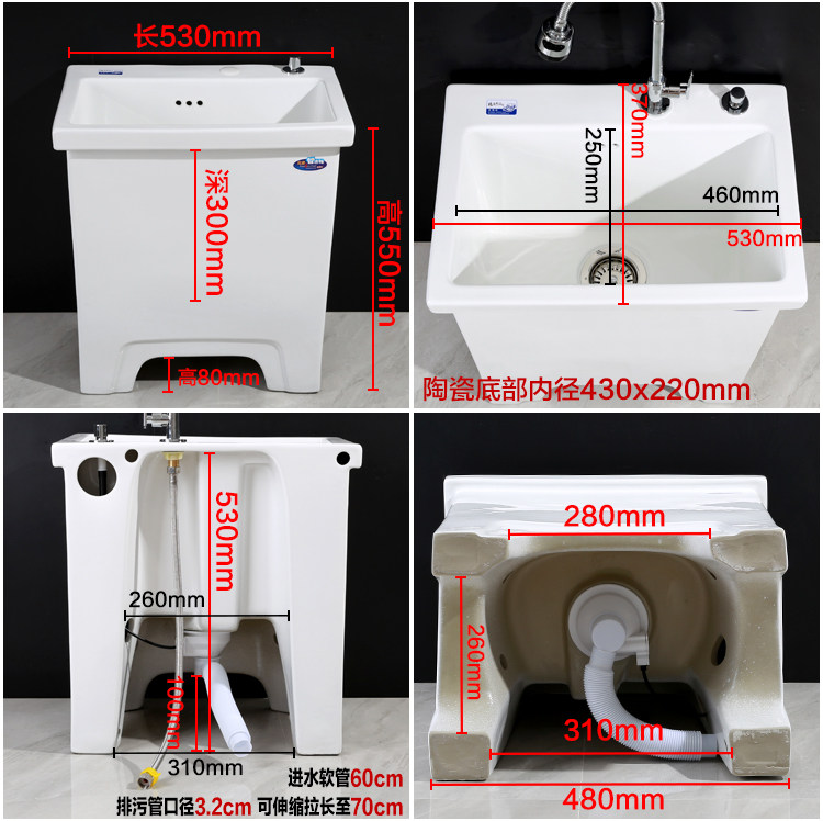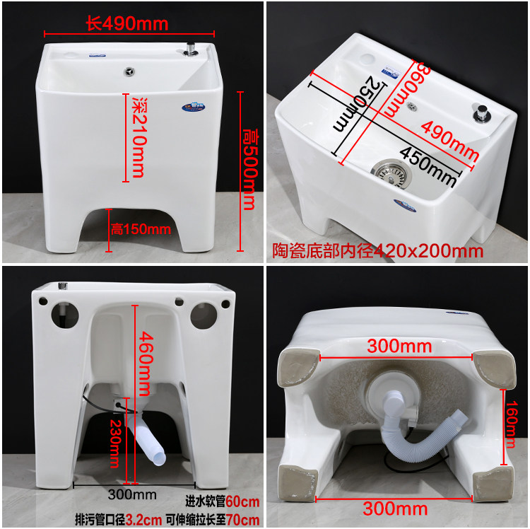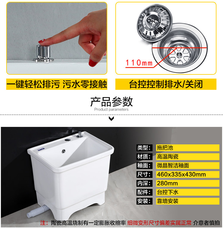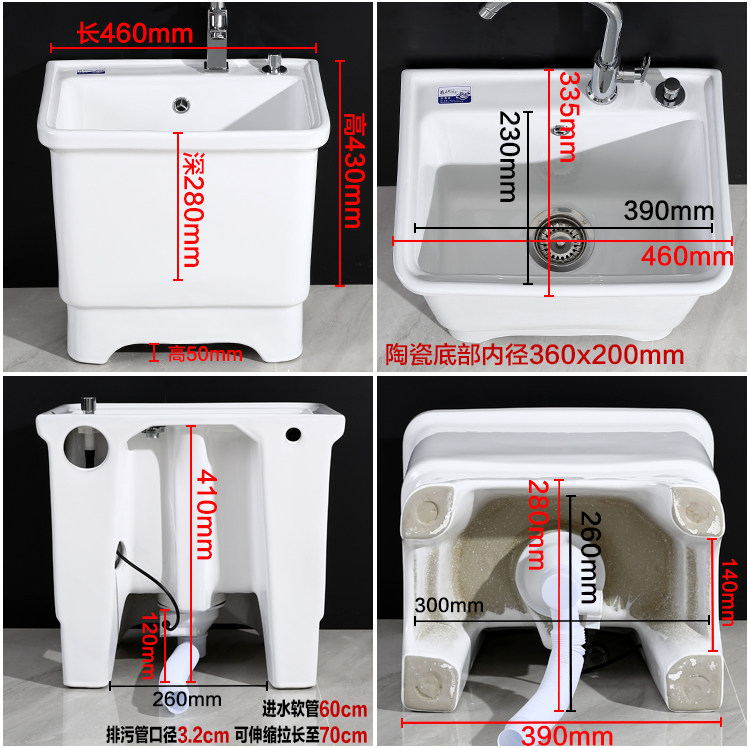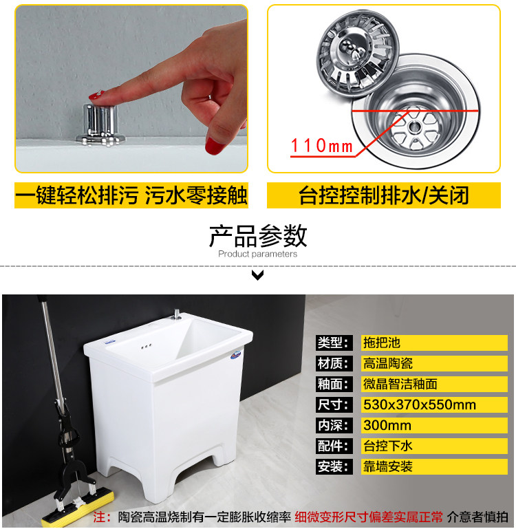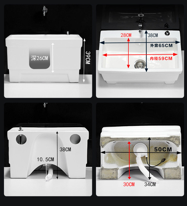 Большая керамическая раковина для швабр для балкона, глубокая раковина с краном для наружного использования