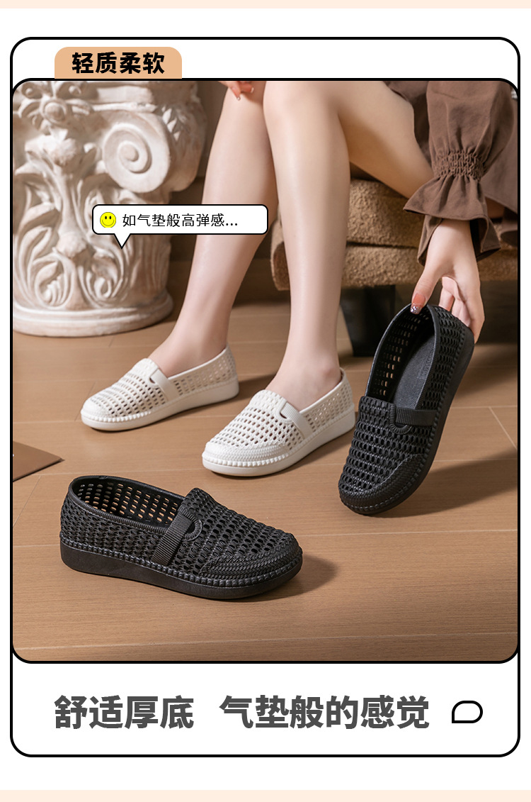 Женские летние обувь с перфорацией дышащие толстосолейные мягкие туфли для медсестер на улице дома повседневные пляжные закрытые сандалии
