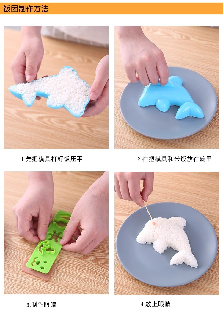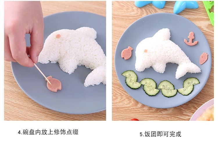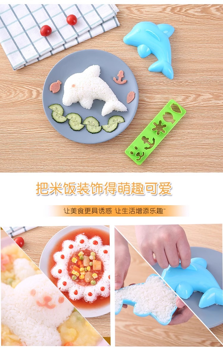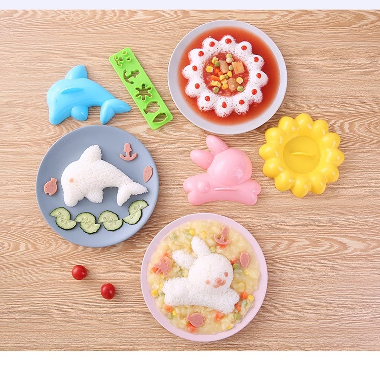 Набор форм для рисовых шариков в виде мультфильмов, дельфин, кролик, цветок, японские милые формы для бенто, инструменты для DIY суши