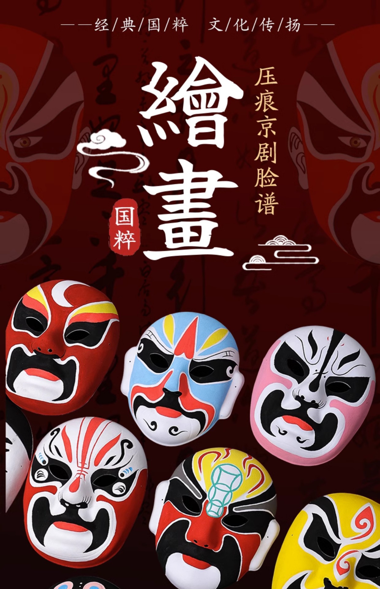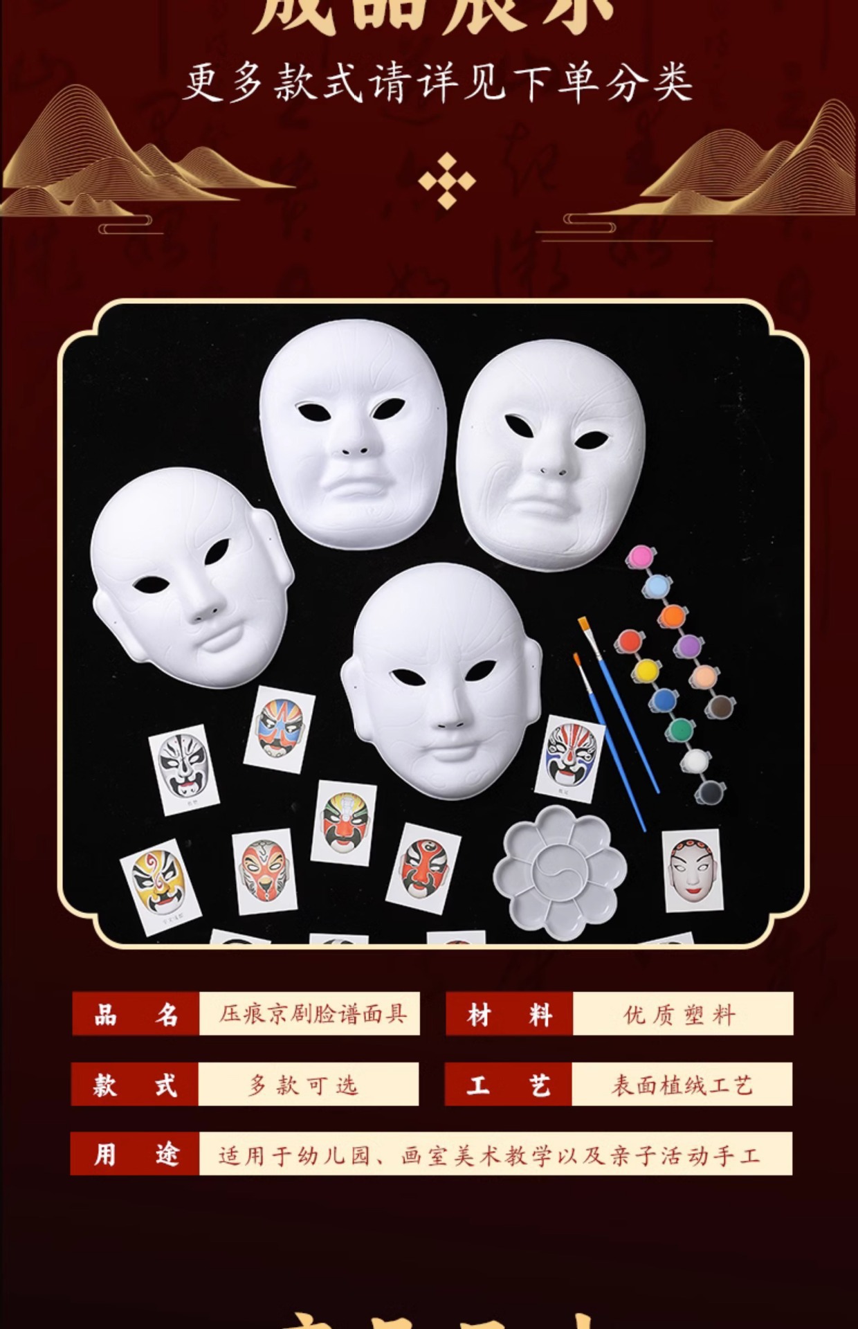 Нематериальное культурное наследие Ручная работа Маска лица Пекинской оперы для DIY Домашняя пустая форма для живописи Детский театр Граффити Сычуаньская опера