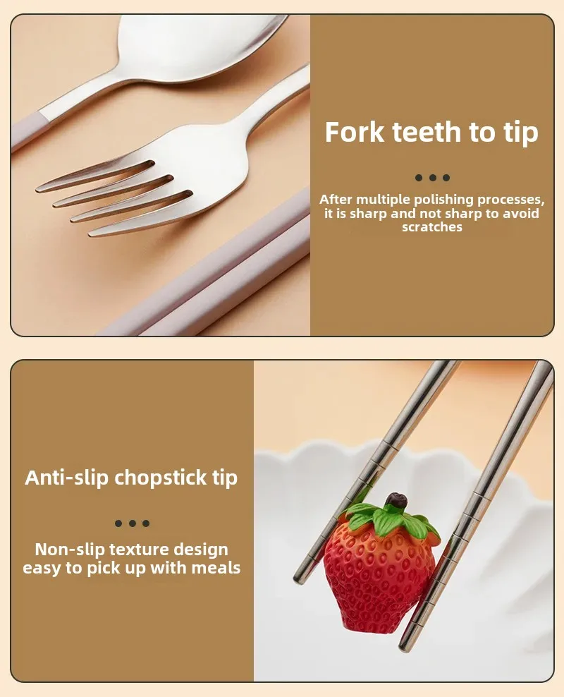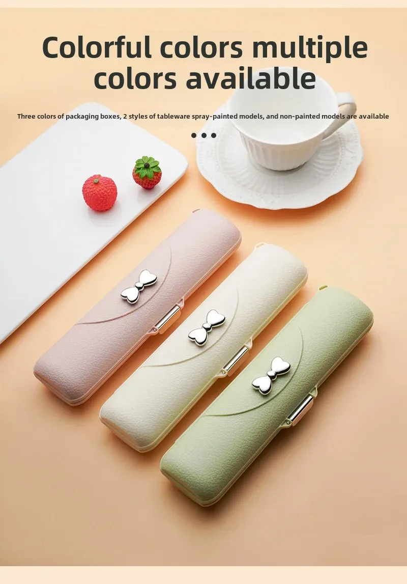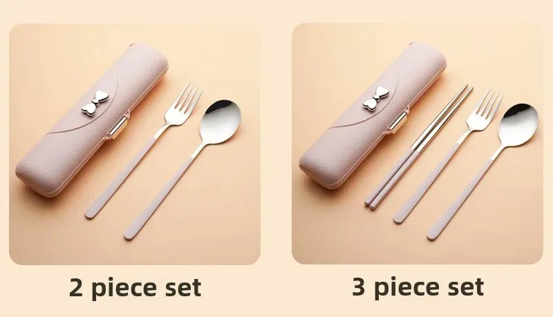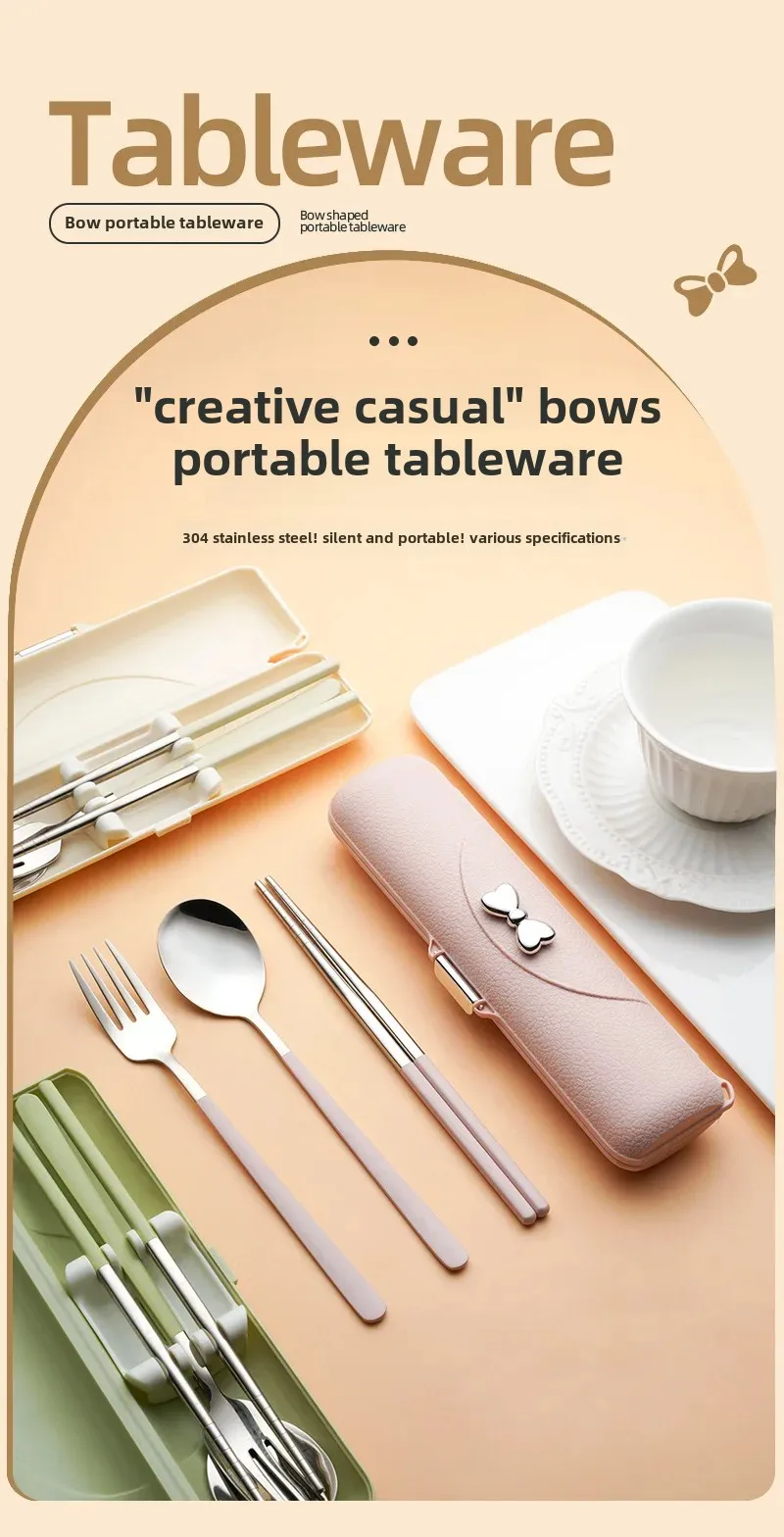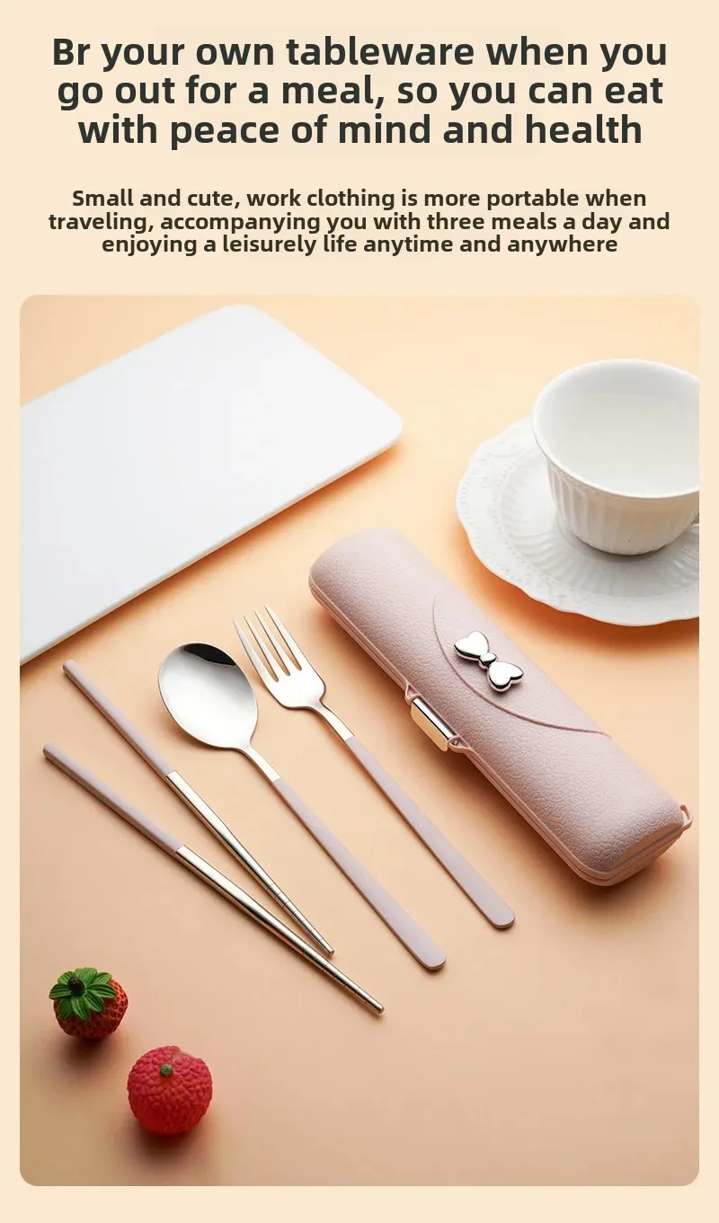 Ложка, вилка, палочки для еды, трехкомпонентная портативная посуда для студентов, высококачественная посуда из нержавеющей стали 304 с коробкой для хранения