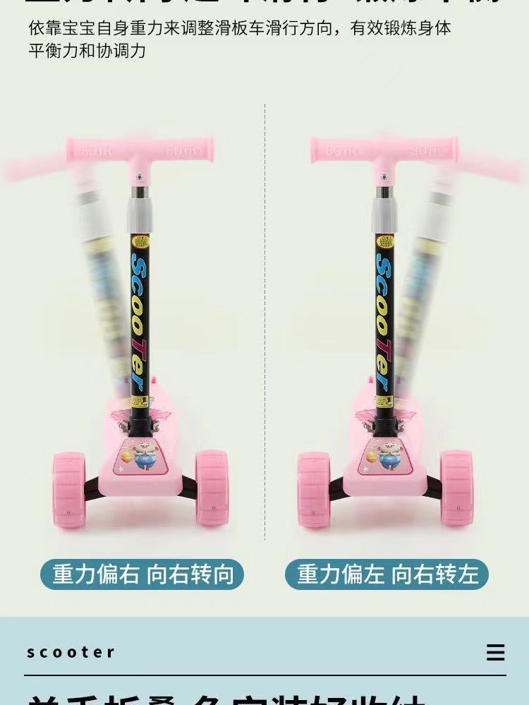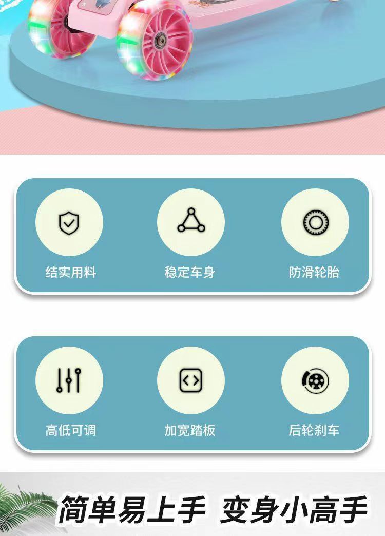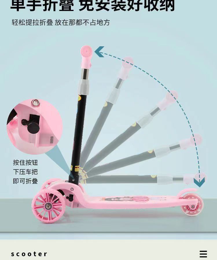 Детский самокат с светящимися колесами для детей 2-6 лет, складной легкий прогулочный автомобиль, индивидуальная настройка