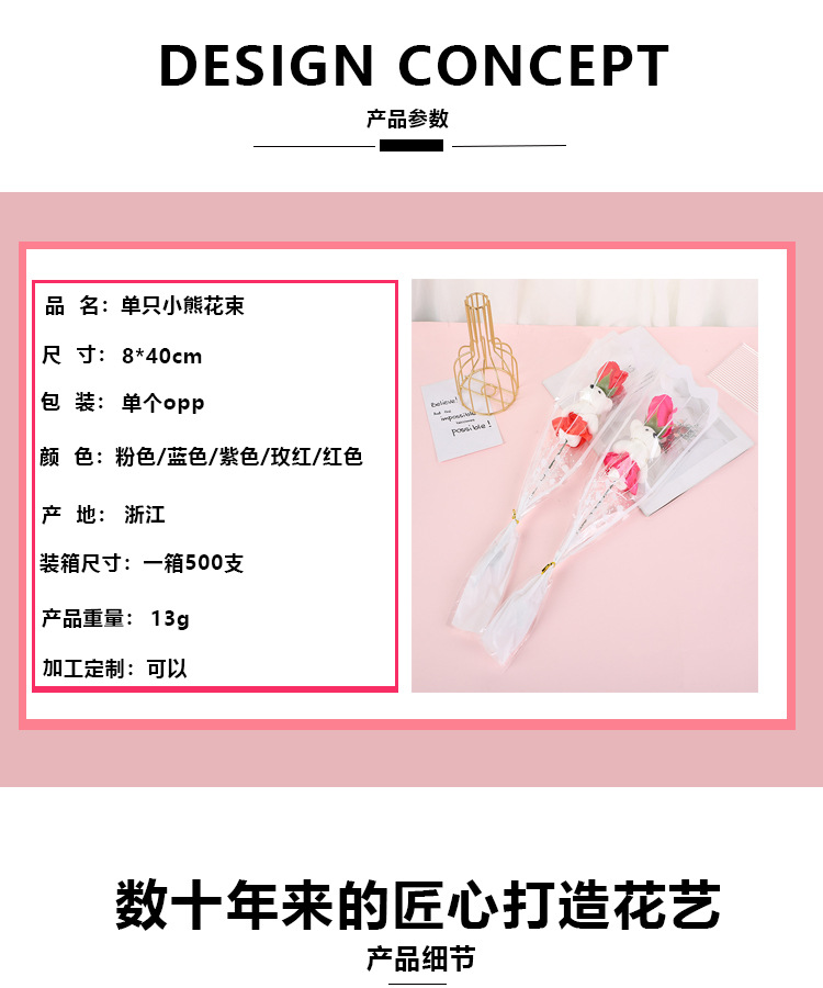 Кросс-браундер новый одиночный мыльный цветок медведя для женского дня, маленький подарок с розовым цветком для мамы на день Святого Валентина, учителя