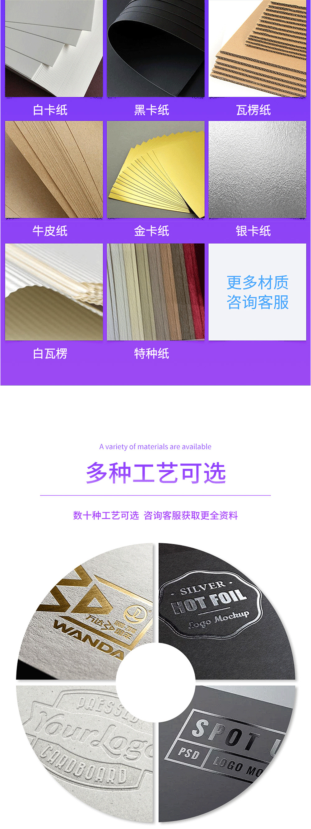 Послепечатная обработка Offset printing, screen printing, embossed printing, uv printing, gravure printing, hot stamping (silver)