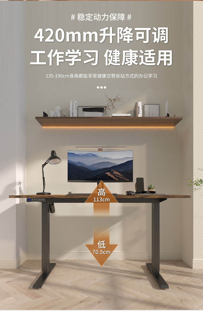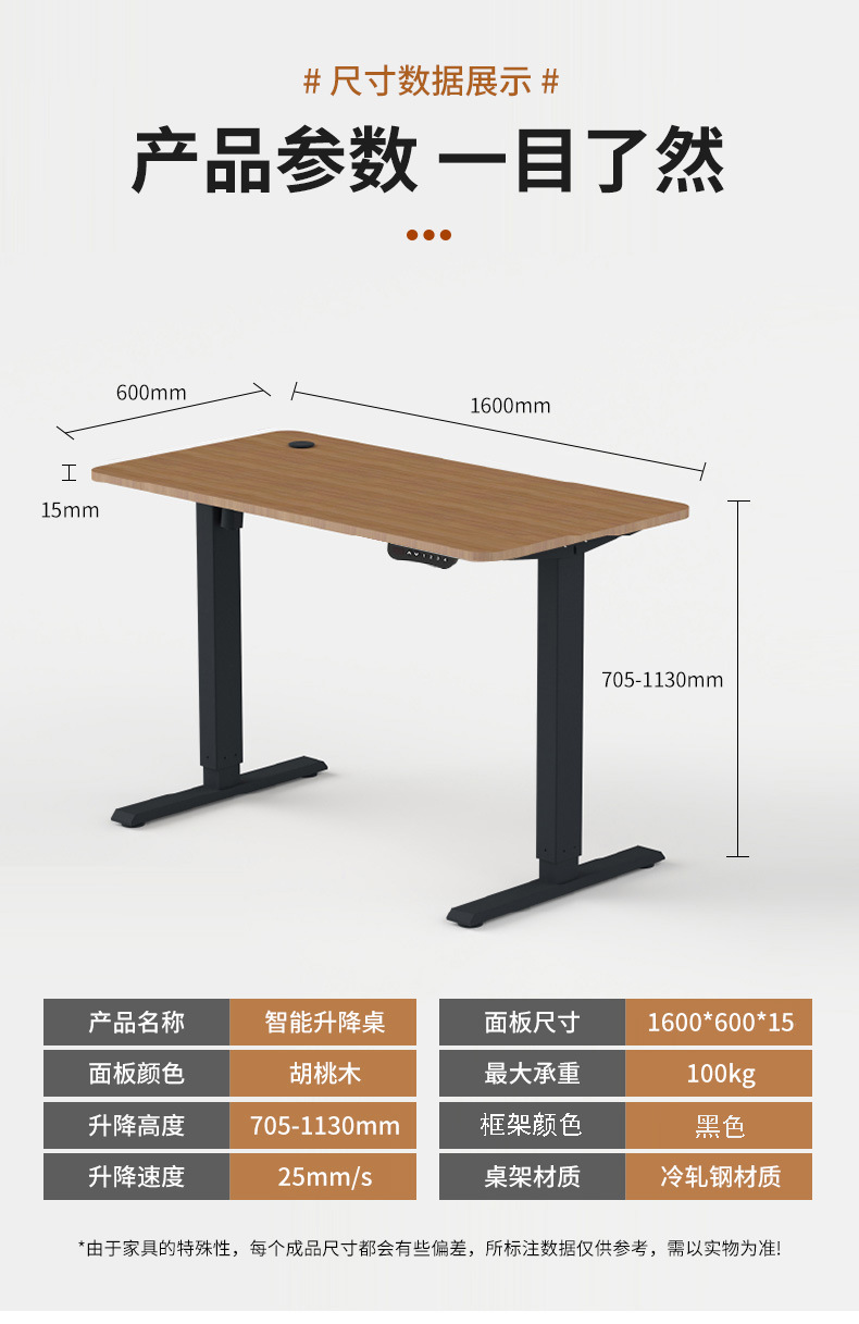 Стол с электроподъемником Xavier 1.6 м, цвет орех, удлиненная подставка