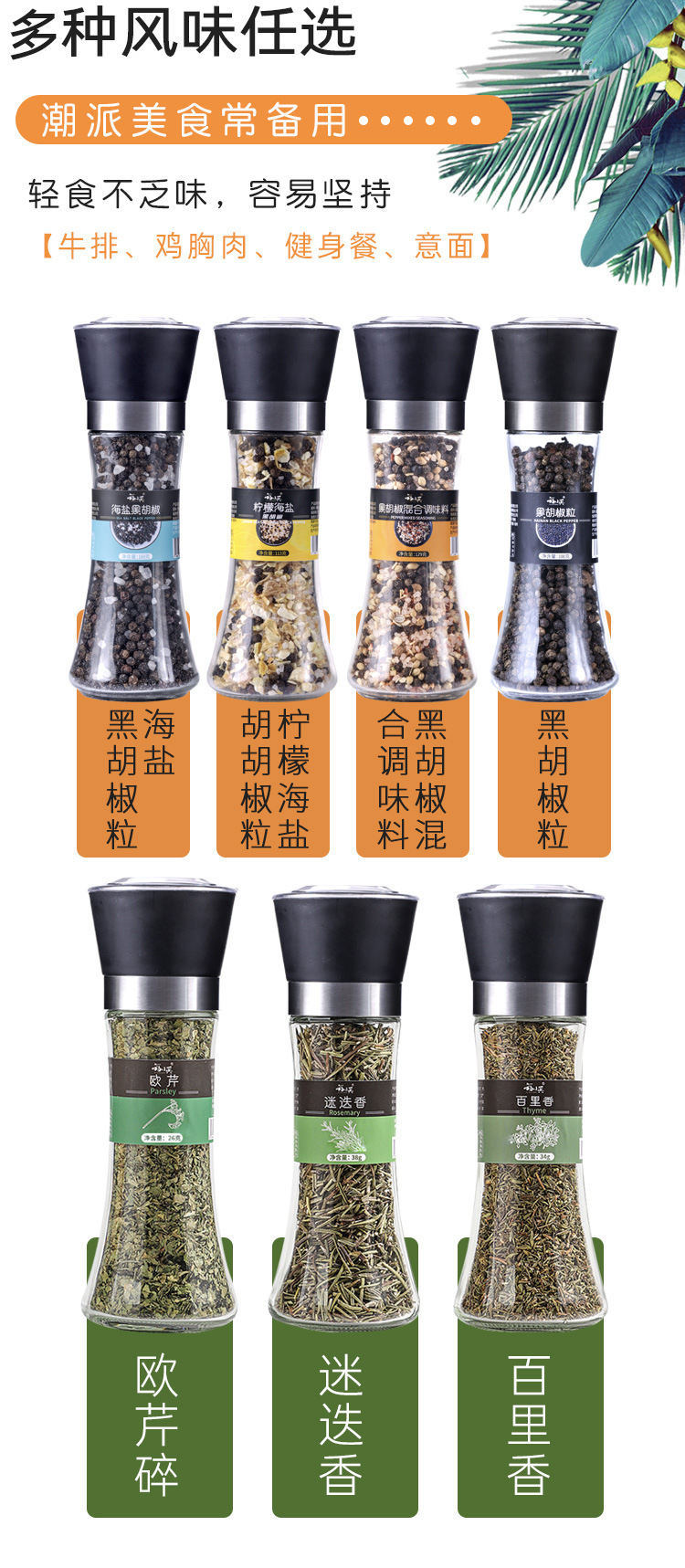 Морская соль с черным перцем Упаковка для молотых специй Петрушка Череда Череда Заправка для стейков