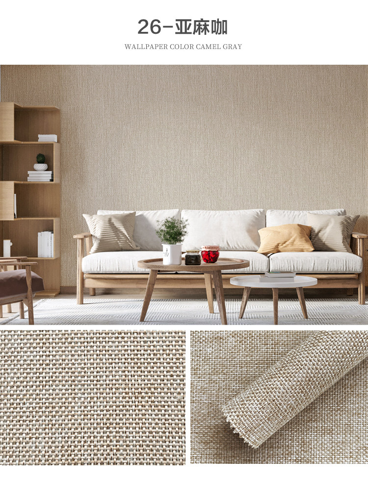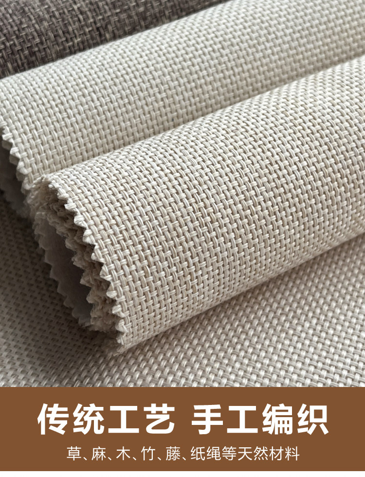 Толстая грубая льняная стеновая ткань бесшовная для всего дома японский стиль простой ротанговый плетеный новый китайский стиль гостиная 2024 новая стеновая ткань