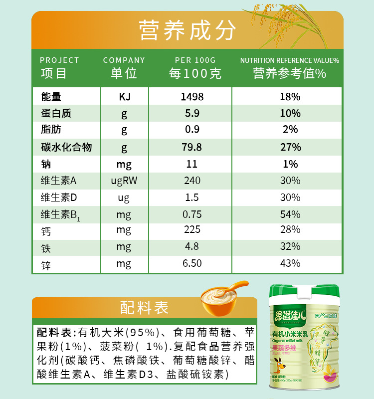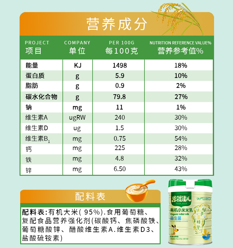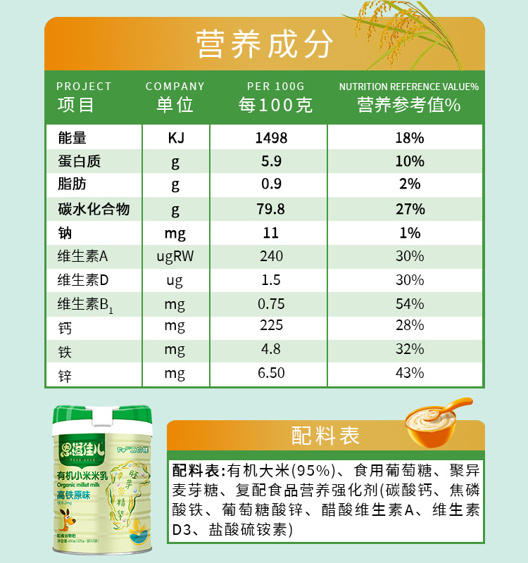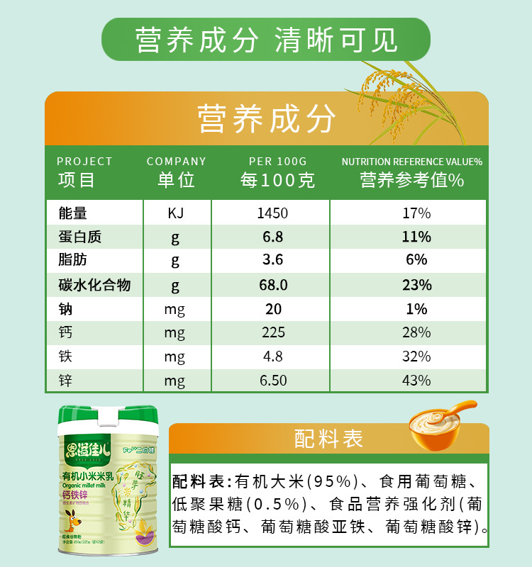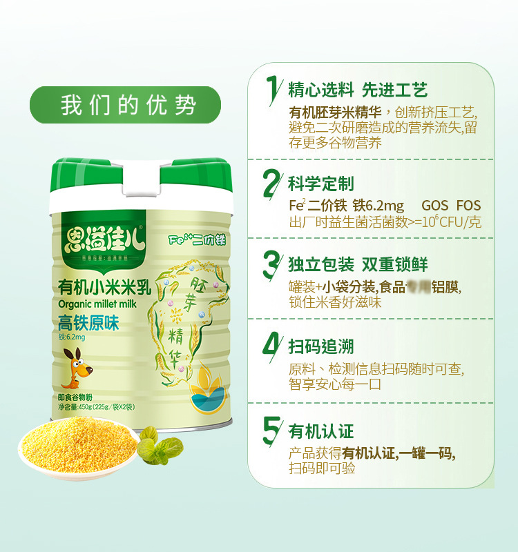 Органическое молоко из проса с кальцием, железом и цинком 450Г