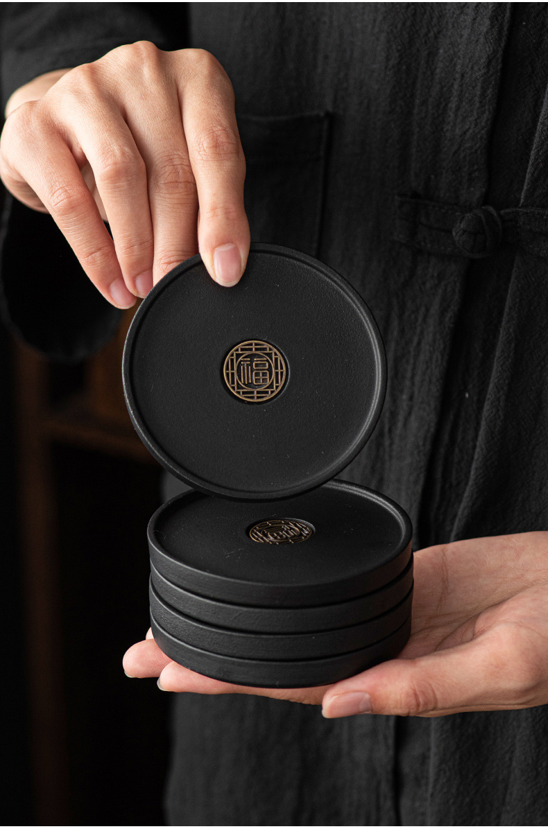Керамическая круглая подставка для чашки, японский чайный поднос, аксессуары для набора кунг-фу