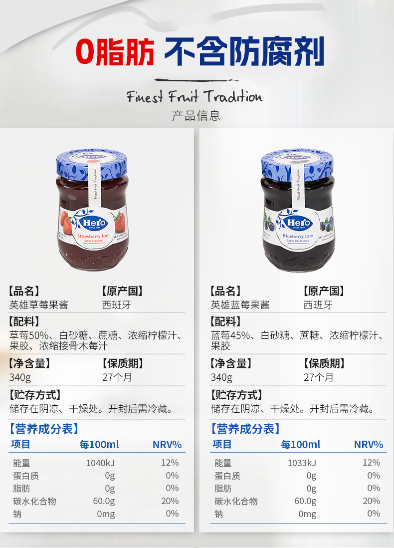 Джем из голубики Hero 340г, без жира, для завтрака