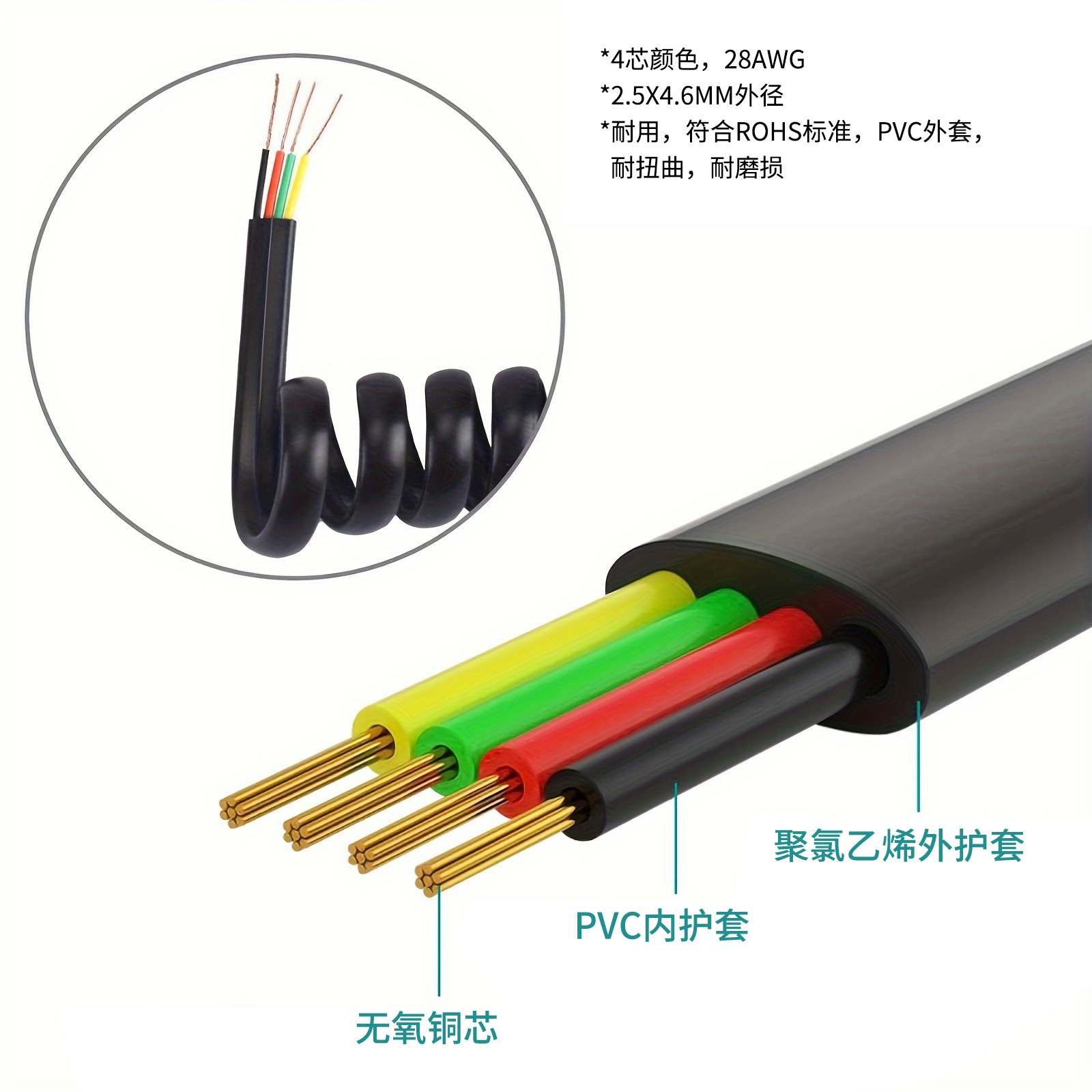 Оптовая продажа белого 4-жильного 6P4C телефонного трубки с изогнутым корпусом для стационарного телефона, пружинный шнур, домашняя линия для ответов, телескопический шнур