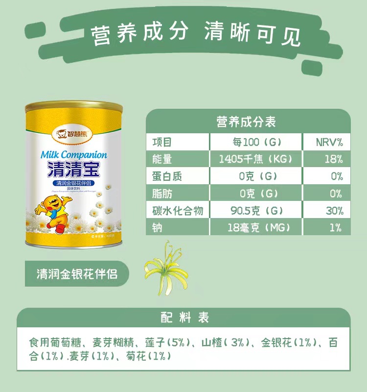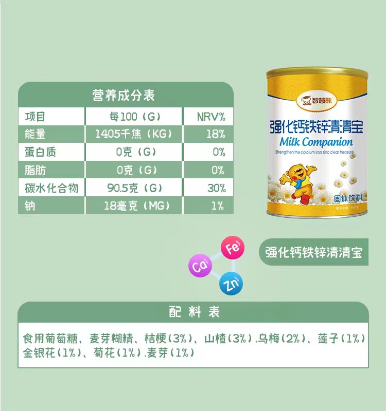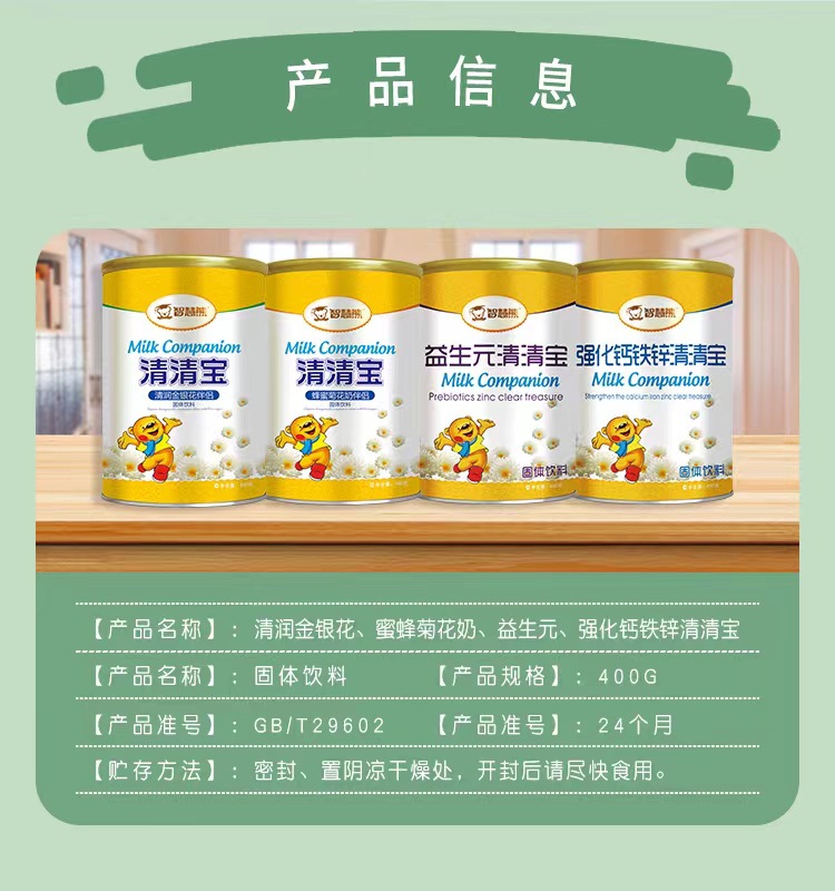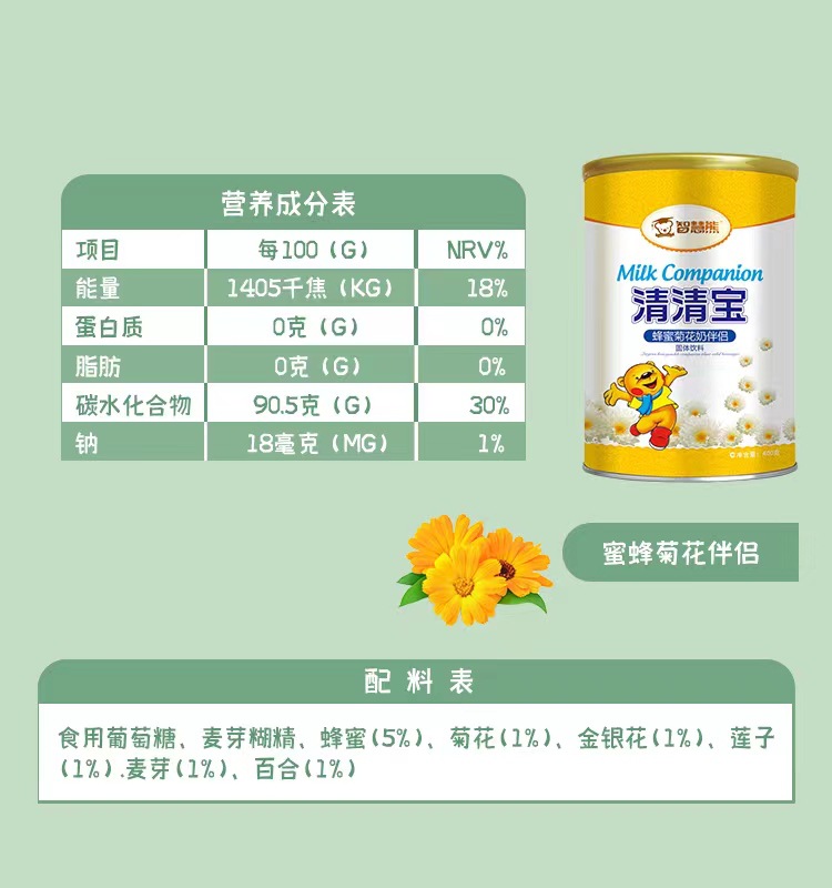 Детские гранулы хризантемы с пребиотиками и медоносом Qinghuobao 400Г/банка, питательный кальций и цинк