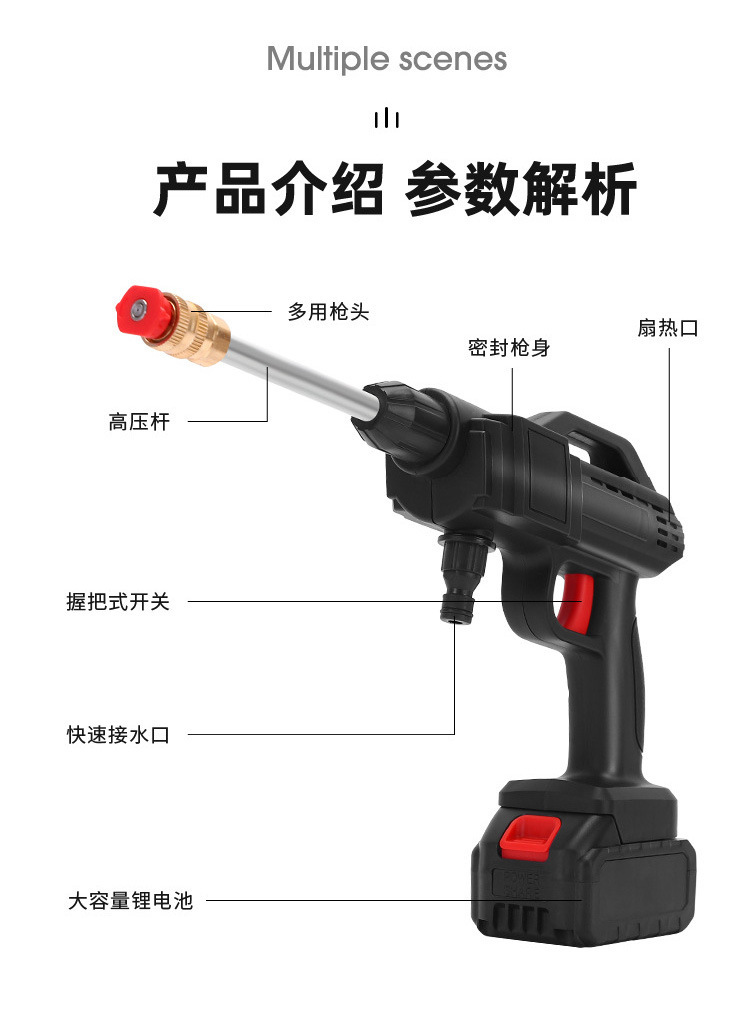 Кросс-бордерная новая высоконапорная мойка автомобилей, беспроводная литиевая батарея, портативный водяной пистолет, бытовой насос для очистки