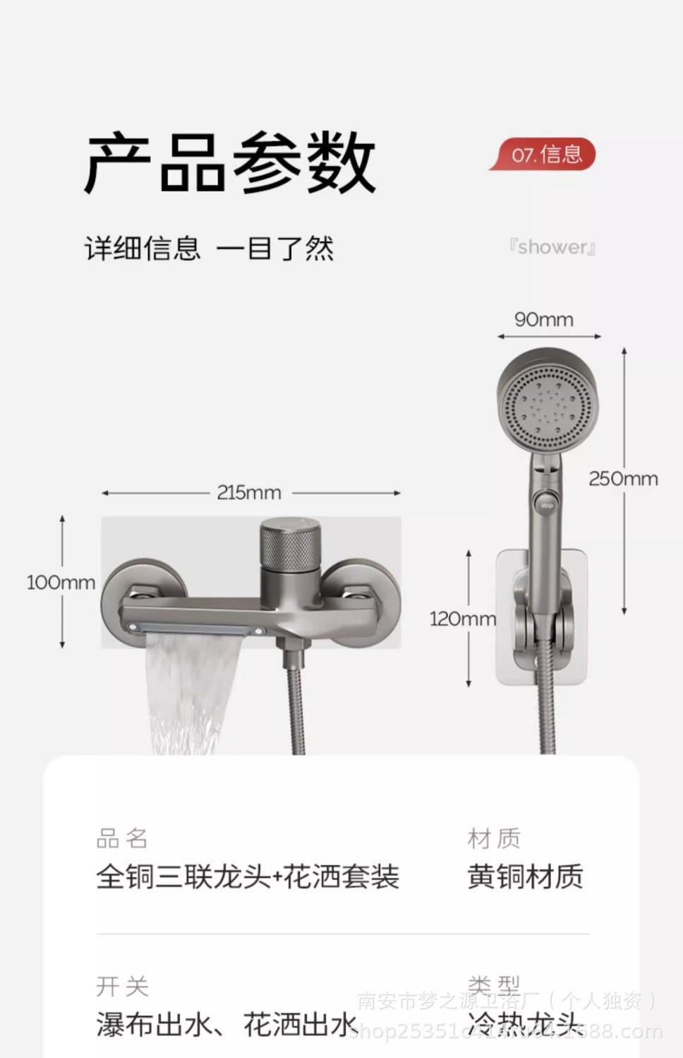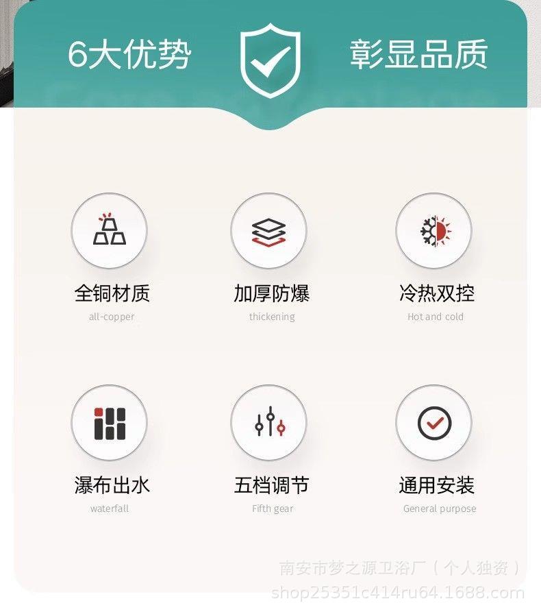 ![]() | [electroplating silver] all-copper waterfall faucet + five-speed water stop nozzle + punch-free bracket + shower pipe | ¥105.0 / ≈ 1 269 ₽ | 68523 | 5283787709345 | |