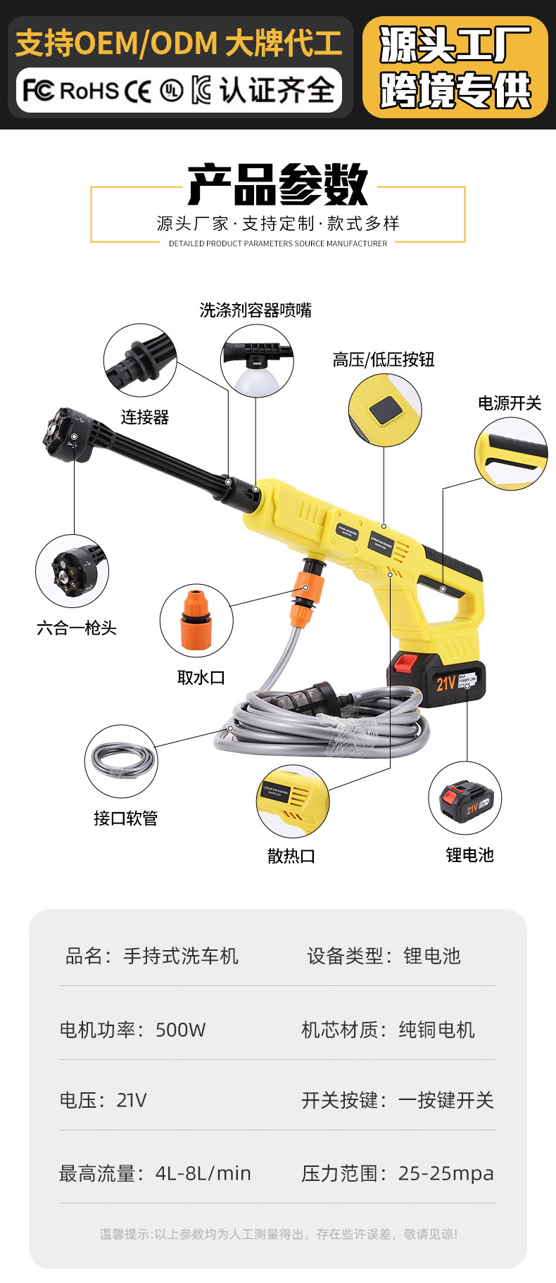 Портативный беспроводной высоконапорный водяной пистолет, высокомощная литиевая батарея, мойка для автомобилей, водяной пистолет для мойки автомобилей, артефакт для мойки автомобилей